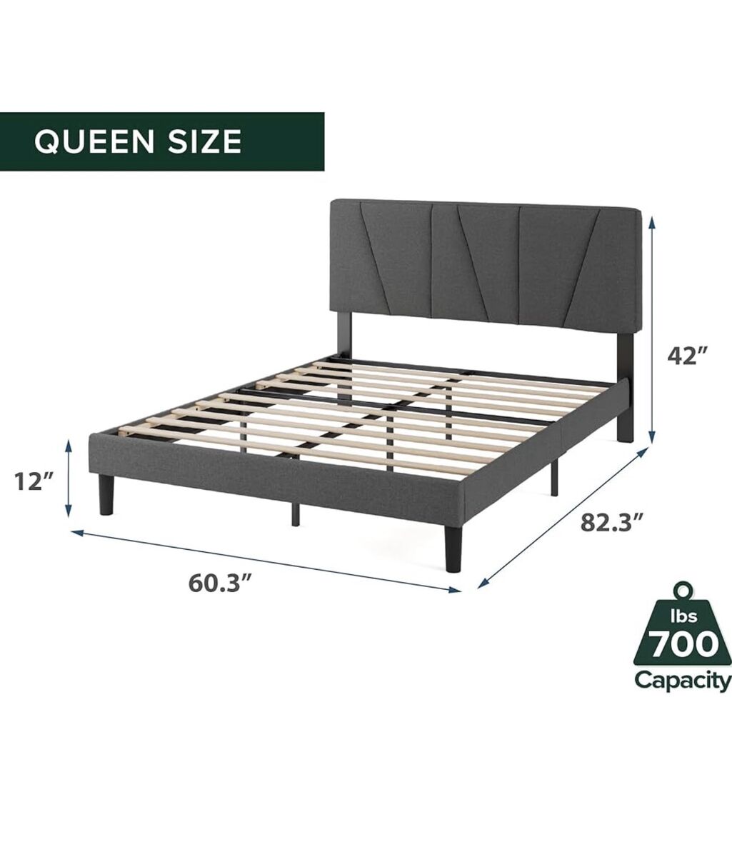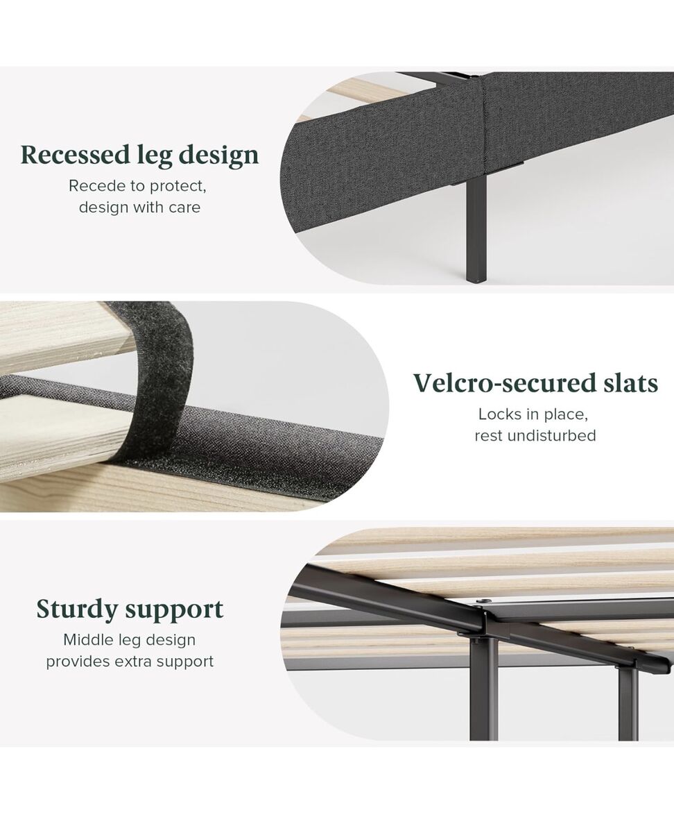 Zinus Queen Maya Upholstered Bed Frame with Asymmetric Headboard, Durable Wooden Slats, Sturdy Framework, Noise Free Sleep, No Box Spring Needed, Easy Assembly, Eco Friendly Packaging, Dark Grey