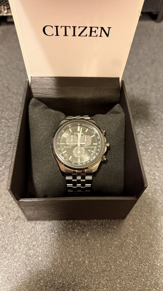 Beautiful watch. Runs off of solar with Citizens Eco-Drive battery system. Brand new in box. Looking for a wrist to ride on.