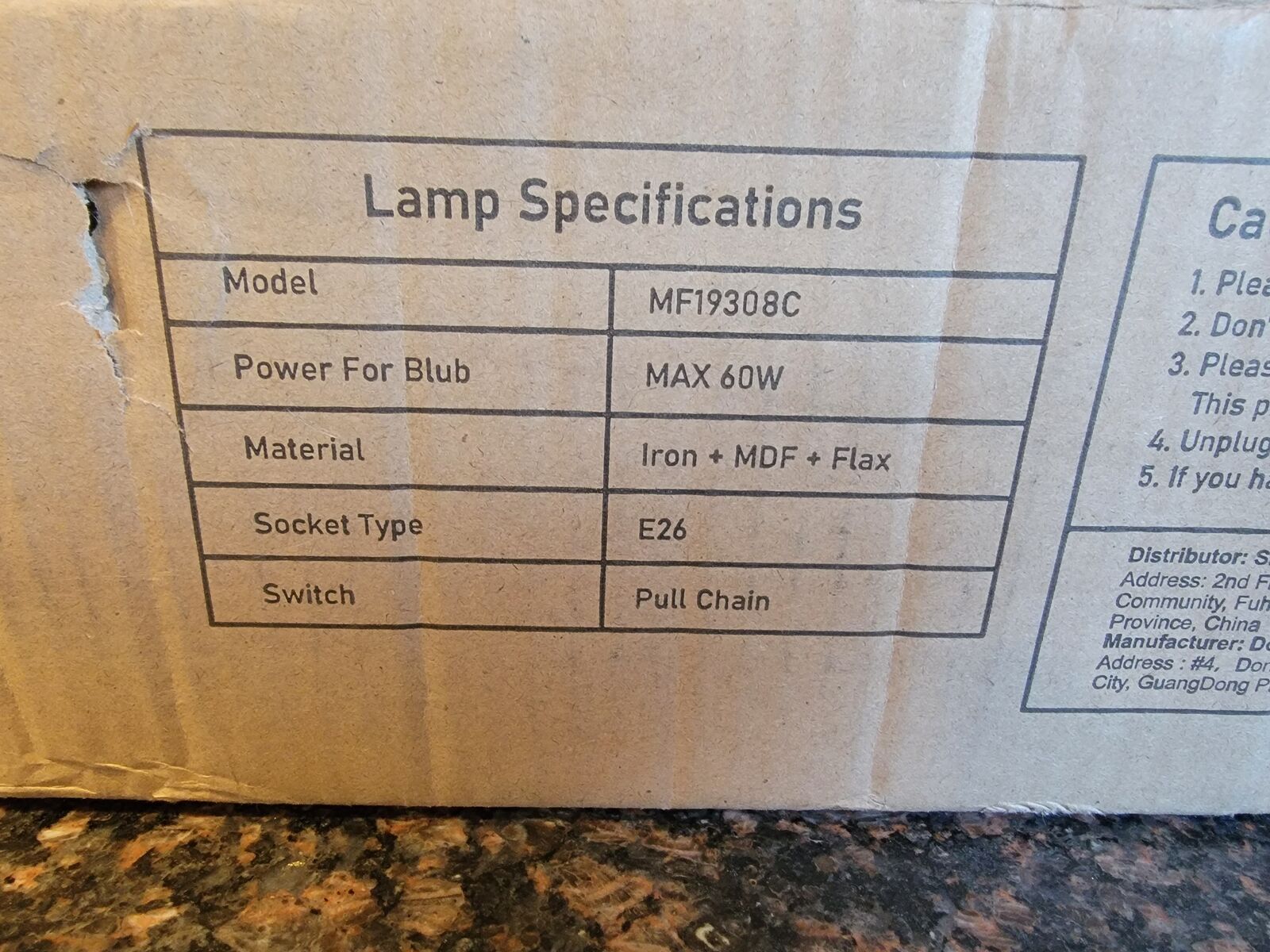 Versatile 3-Color Lighting: Features a 9W LED bulb with three color temperatures (3000K warm white, 4000K neutral, 5000K cool white) to perfectly suit activities like reading, relaxing, or entertaining. Dual-purpose shelf and lamp: offers a sturdy shelf that can hold over 50 lbs. for books or decor, functioning as both a space-saving storage solution and a practical lamp Soft, non-glaring illumination: equipped with an upward-opening, off-white cloth lampshade that diffuses light softly to provide comfortable ambient and functional lighting without eye strain Modern and adaptable design: its minimalist style with clean lines effortlessly complements a wide range of home decors, from mid-century modern to rustic and farmhouse Quick and easy assembly: simplified installation process includes all necessary tools and a manual with both text and video instructions for straightforward setup Specification: model number: mf19308; power for bulb: max 60w; socket type:e26; switch:pull switch; recommended bulb: a19/st64/st58; voltage: 100-120v; power:9w; cct: 3000k-5000k-4000k; life: 30000h Package content: lamp x 1;bulb x 1.