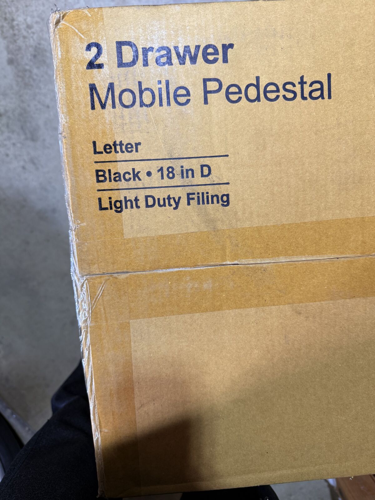 Two-drawer light duty filing cabinet holds letter size documents