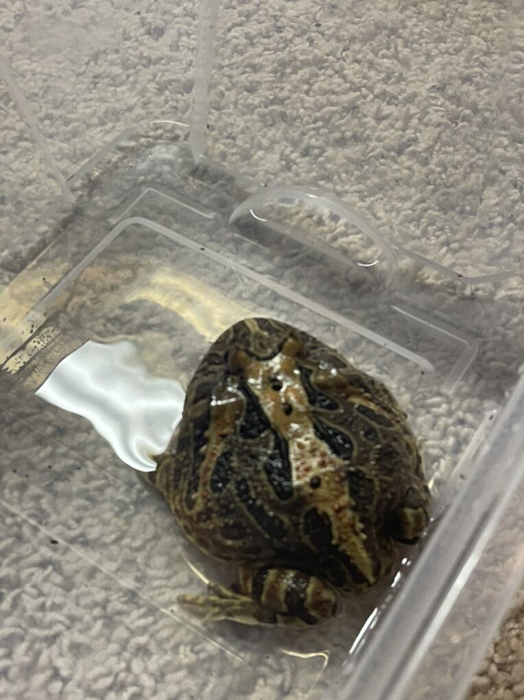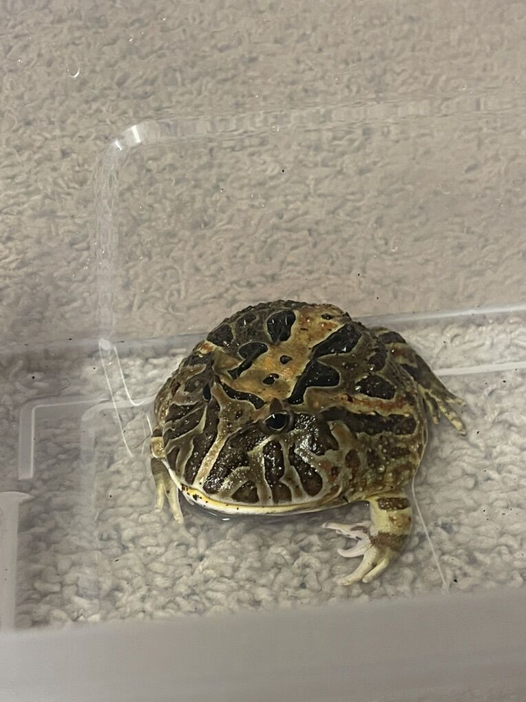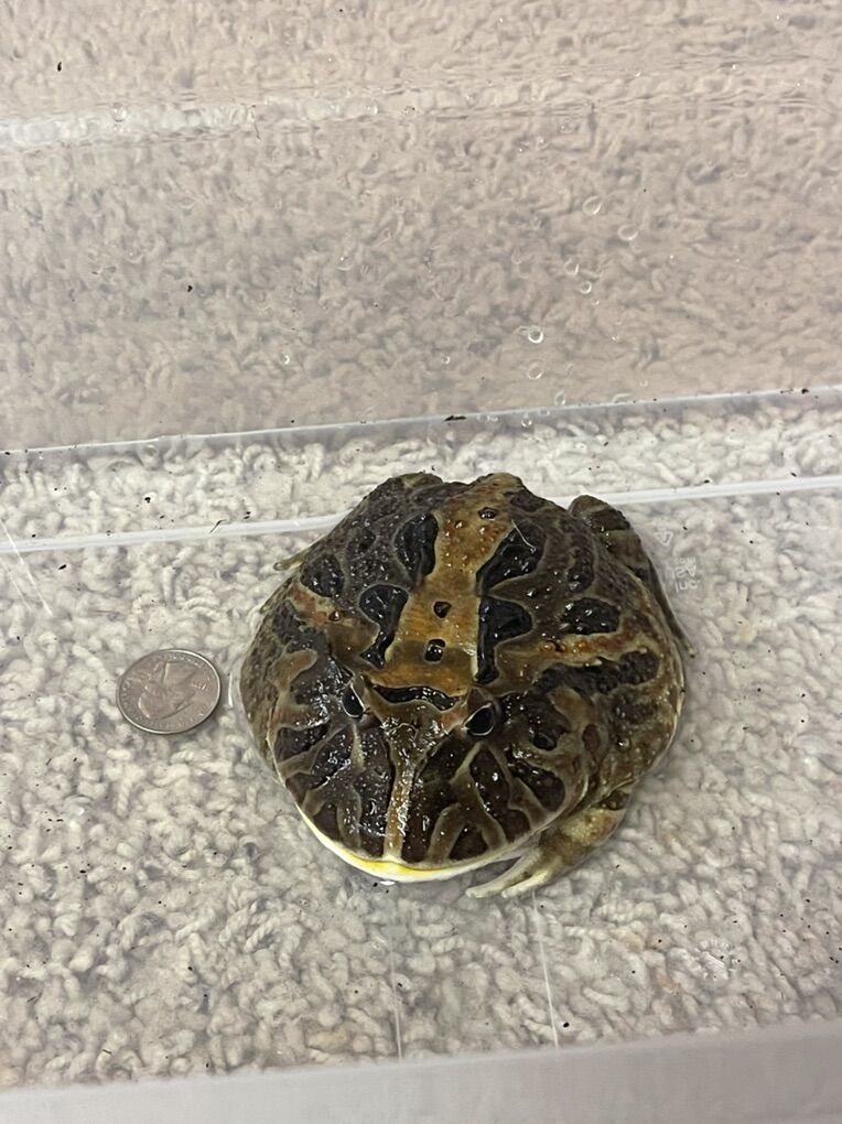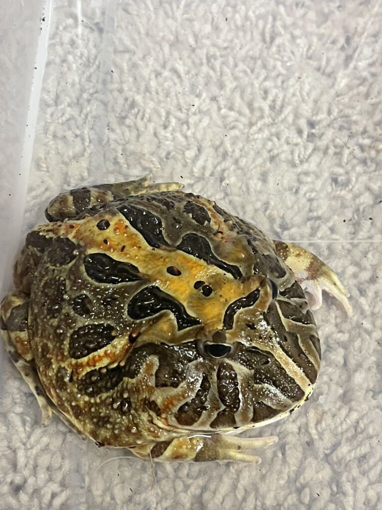 Healthy, well-started Pacman frog with beautiful natural coloring and a big, round build. She’s a fun little frog with a lot of charm and would make an awesome display pet. She’s been well taken care of and fed regularly.