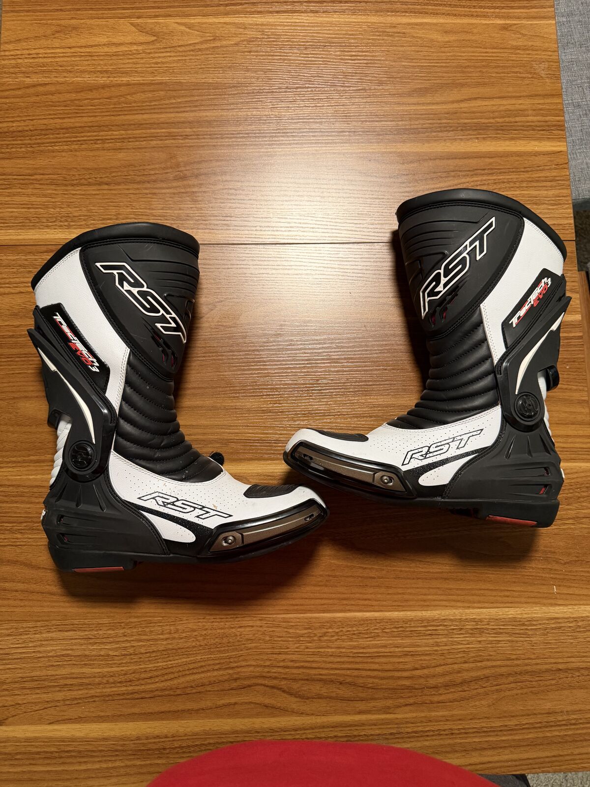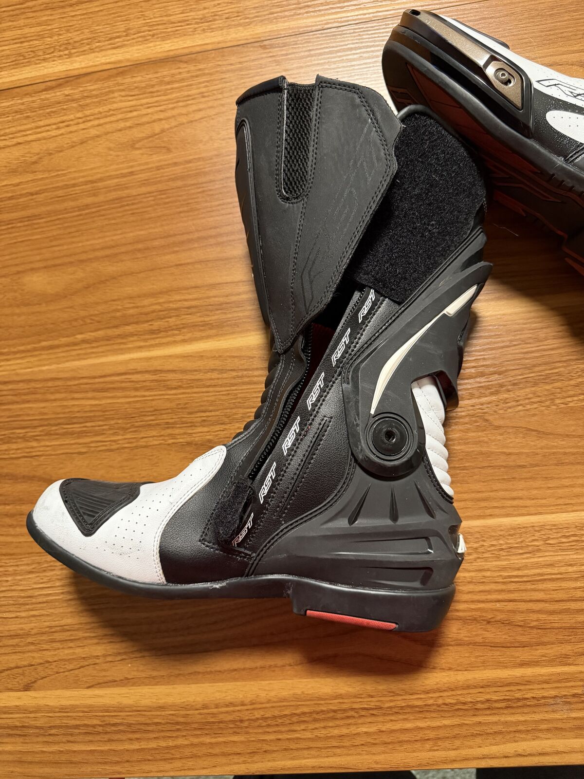 ZelleSelling my RST Tractech Evo 3 Sport CE motorcycle boots in White/Black, size US 10. Designed for sport riding with strong protection and a race-inspired look.