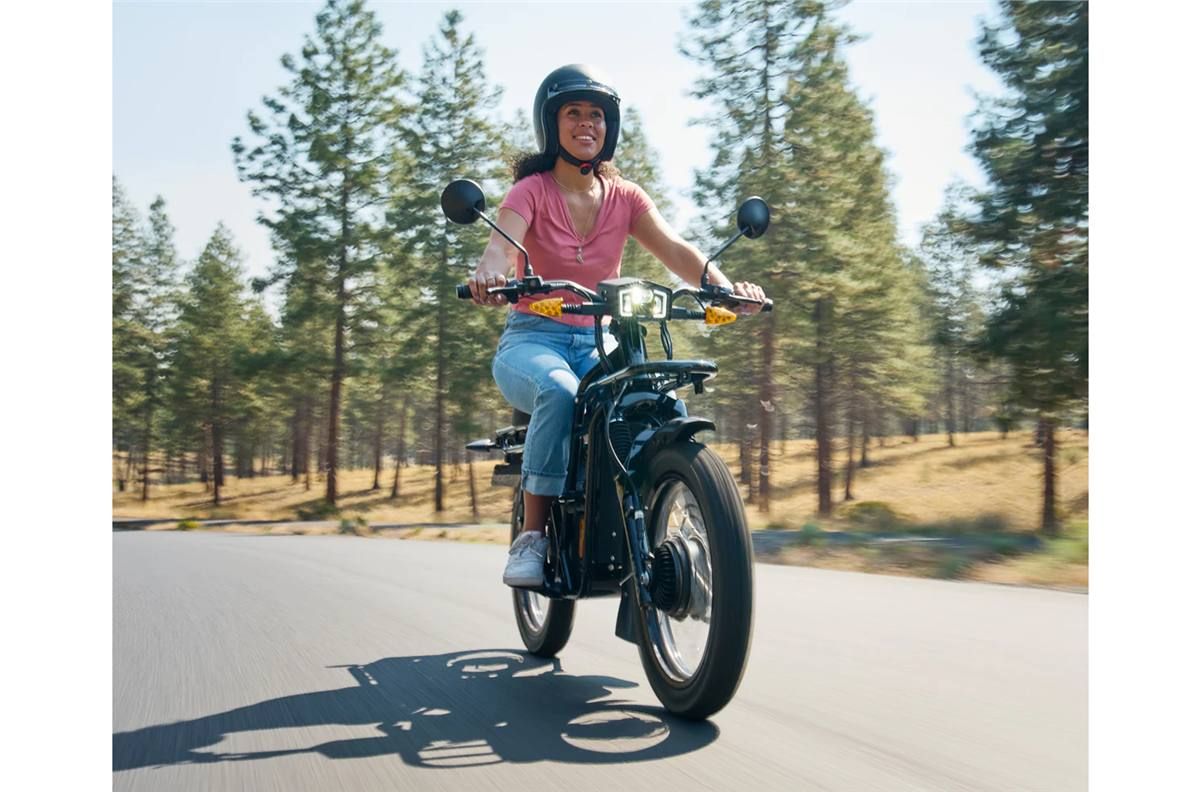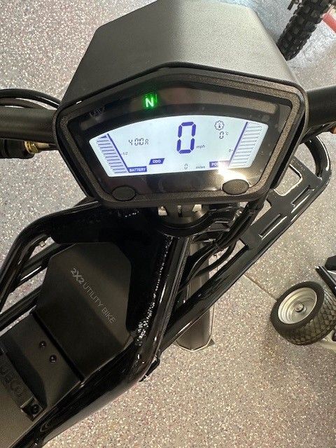 4-6 hours Charge time (Includes Fast Charger) Battery: 2.1kWh Charger: 10amp allow fast charger Front Tire: 17x2.75 in. multi-use tires Rear Tire: 17x2.75 in. multi-use tires Front Brake: 240 x 2.7 mm rotors Rear Brake: 240 x 2.7 mm rotors Front Suspension: Coil spring with hydraulic dampener Rear Suspension: 120mm rear suspension. Coil over spring with hydraulic dampener Frame: Super X step through frame: 7027 alloy Top Speed: 30 mph (50 km/h) Regeneration: Hydraulic & regenerative brakes operate together Colors: Black Weight: 116 lb. (52.7 kg) excl. battery Wheelbase: 3.98 ft. (1215 mm) Length: 6 ft. (1,820 mm) Height: 41 in. (1,040 mm) Width: 32.3 in. (820 mm)