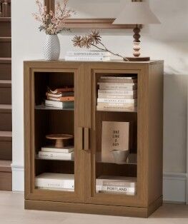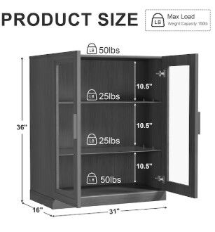 VenmoNew - Misty Moon 36" Tall Wood Grain Storage Cabinet in Walnut Storage Organizer w/ 2 Glass Doors. Still in the Box!