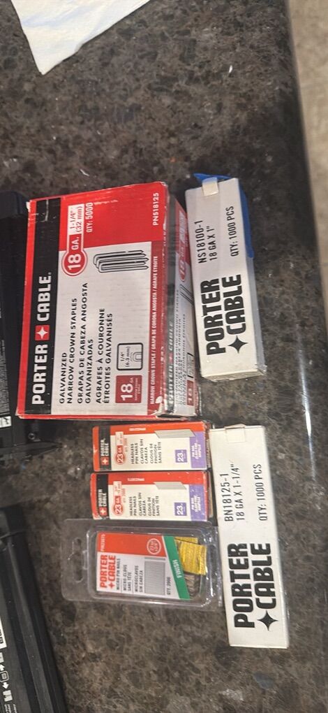 PayPalPorter Cable - Model NS 100B crown stapler and Model PIN 100 pin nailer, Porter Cable Brad nailer BN 138, includes 6 boxes of fasteners. I do not think these tools have even been used.