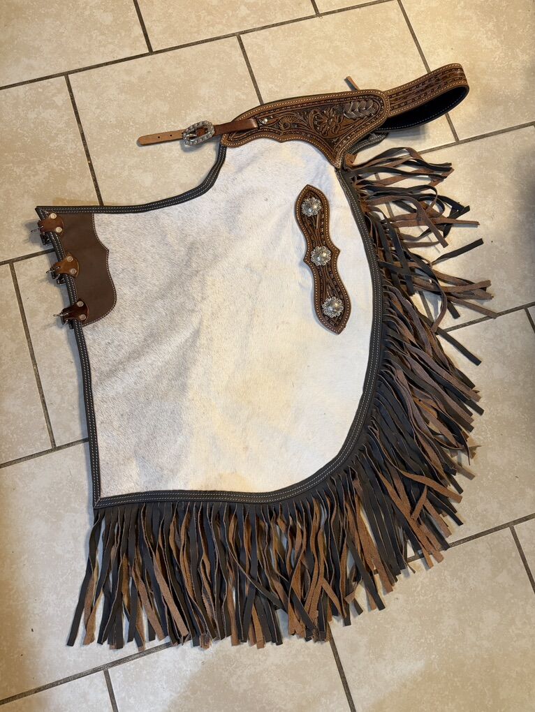 PayPalBrand new pair of white hair on hide chaps. These are really nice and look even better in person! Super adjustable. Should fit between 28”-36” waist. $200 or $220 if they need to be shipped.
