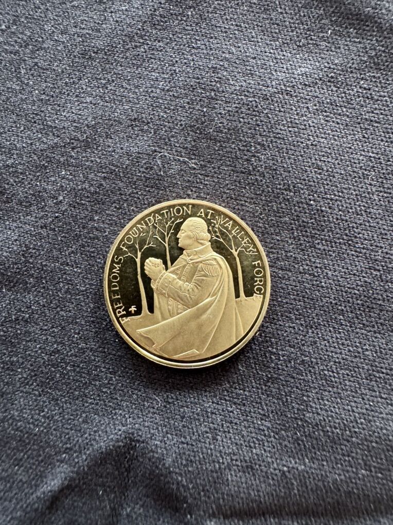 This is a 1977 Franklin Mint proof gold medal commemorating the 200th anniversary of the historic winter at Valley Forge. It depicts a Continental soldier standing guard, with the years 1777 and 1977 inscribed on either side. The medal was issued by the Freedoms Foundation at Valley Forge. The coin is 2.85 grams of 12k gold! In beautiful condition. Calls and texts only please. Thanks!