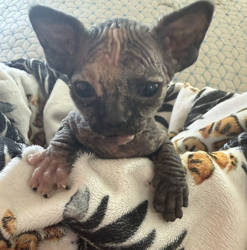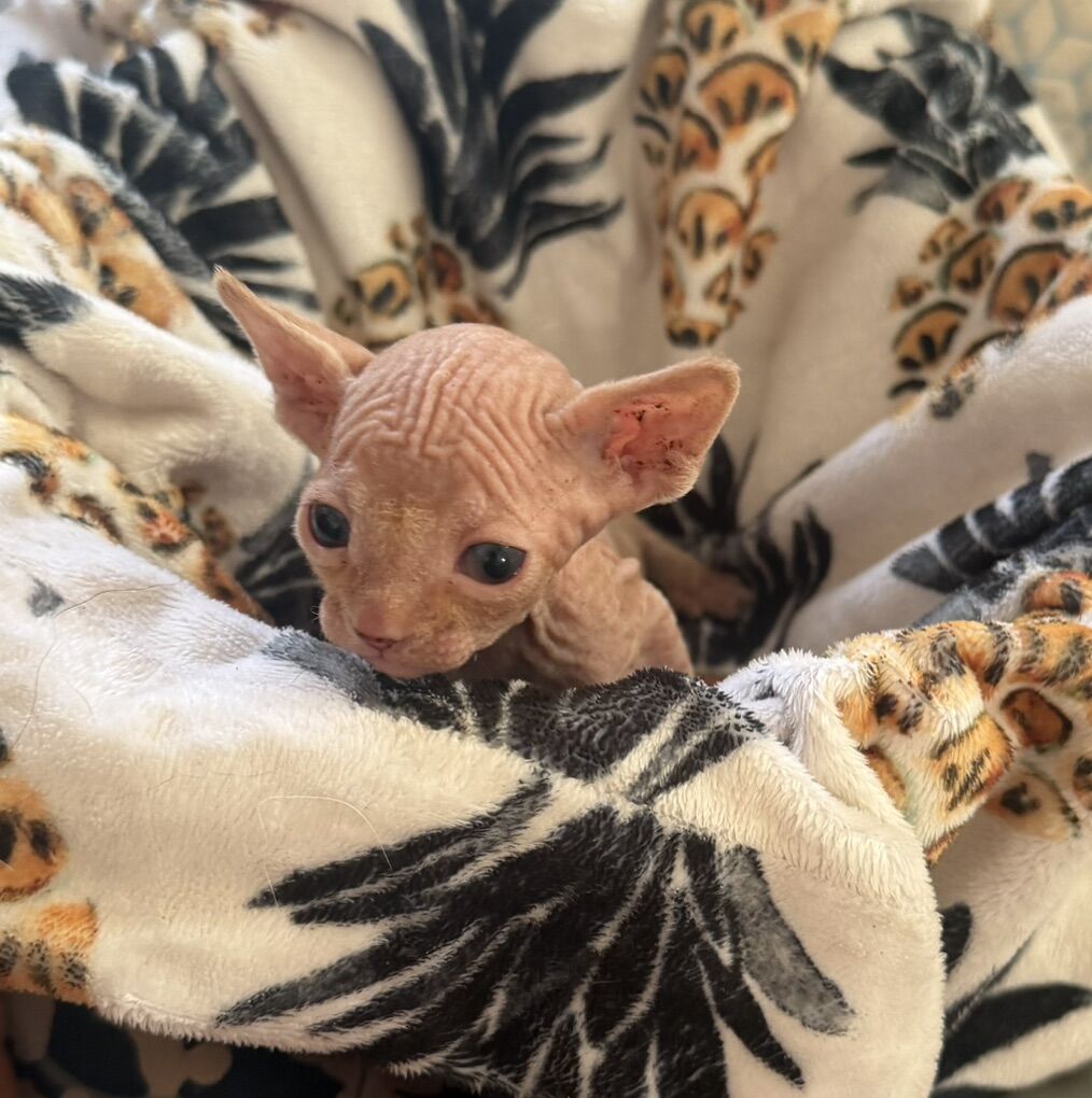 Unforgettable Companions: Sphynx Kittens Available Now! Are you looking for a unique, affectionate, and truly one-of-a-kind addition to your family? We are thrilled to announce our latest litter of Sphynx kittens, born on January 28, 2026. These little velvet treasures are raised in our home with both parents on-site, ensuring they are well-socialized and full of personality. Meet the Litter Each of these kittens features striking, soulful blue eyes that will capture your heart at first glance: • The Pink Princes (2 Males): Beautiful, classic pink skin with a warm, energetic temperament. — $1000 • The Grey Goddess (1 Female): A stunning, sleek grey coat (skin) with a sophisticated presence. —$1300 Investment & Reservation To ensure these kittens go to dedicated forever homes, we have a simple reservation process: • Deposit: A $500 non-refundable deposit is required to hold the kitten of your choice. • Balance: The remaining balance is due in full at the time of pickup. Why Choose a Sphynx? Beyond their exotic look, Sphynx cats are known for being exceptionally dog-like in their loyalty. They love to snuggle, follow you from room to room, and provide endless entertainment with their playful antics. Don't miss your chance to own one of these blue-eyed beauties!