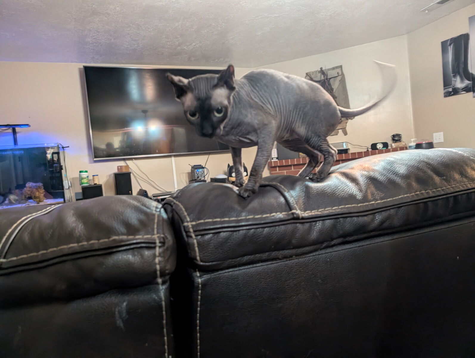 This is Wednesday, she is an intact female sphynx, 2 years old.