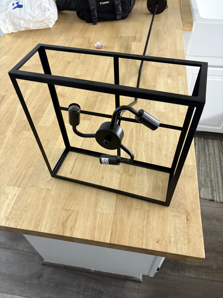 I picked up this pendant light thinking I'd change out the one over our kitchen sink. Decided not to swap them as I didn't want to change out the other lights that matched in the kitchen/dining area. It measures 51" top to bottom. 44" of that is the pole that connects the base to the actual ficture. The poles do unscrew, and I'd imagine you could remove a section if you needed it to be shorter. Asking $25. Let me know if you have any questions.