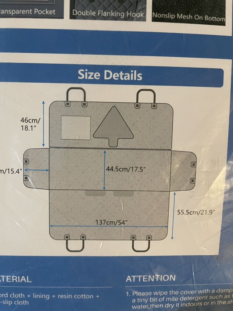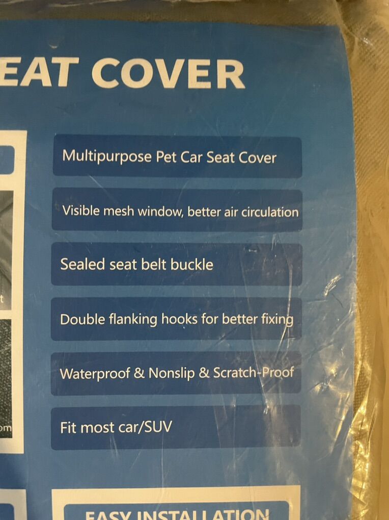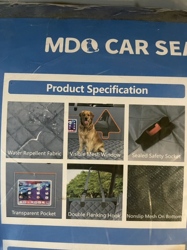 VenmoMDO Car Seat Cover is designed with water-repellent fabric, a mesh window for visibility, and nonslip mesh on the bottom. Product: MDO Car Seat Cover Features: Water-repellent fabric, mesh window, and nonslip backing. Accessories: Includes a transparent pocket and double flanking hooks. Safety: Features a sealed safety socket for seatbelt access.