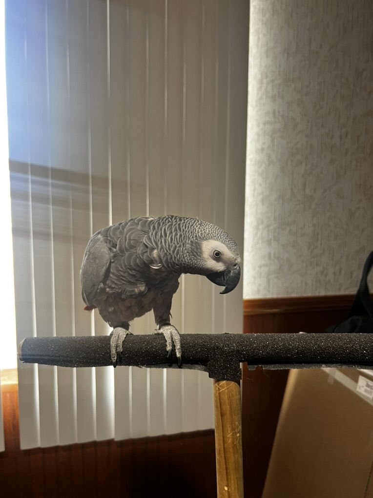 Meet Socks she is around 25 to 30 years old. I’m hoping I can find someone that loves African gray parrots so she can have a mate. She is a female and has laid eggs. She is healthy and loves to take showers and has a wide range of words that she can say.
