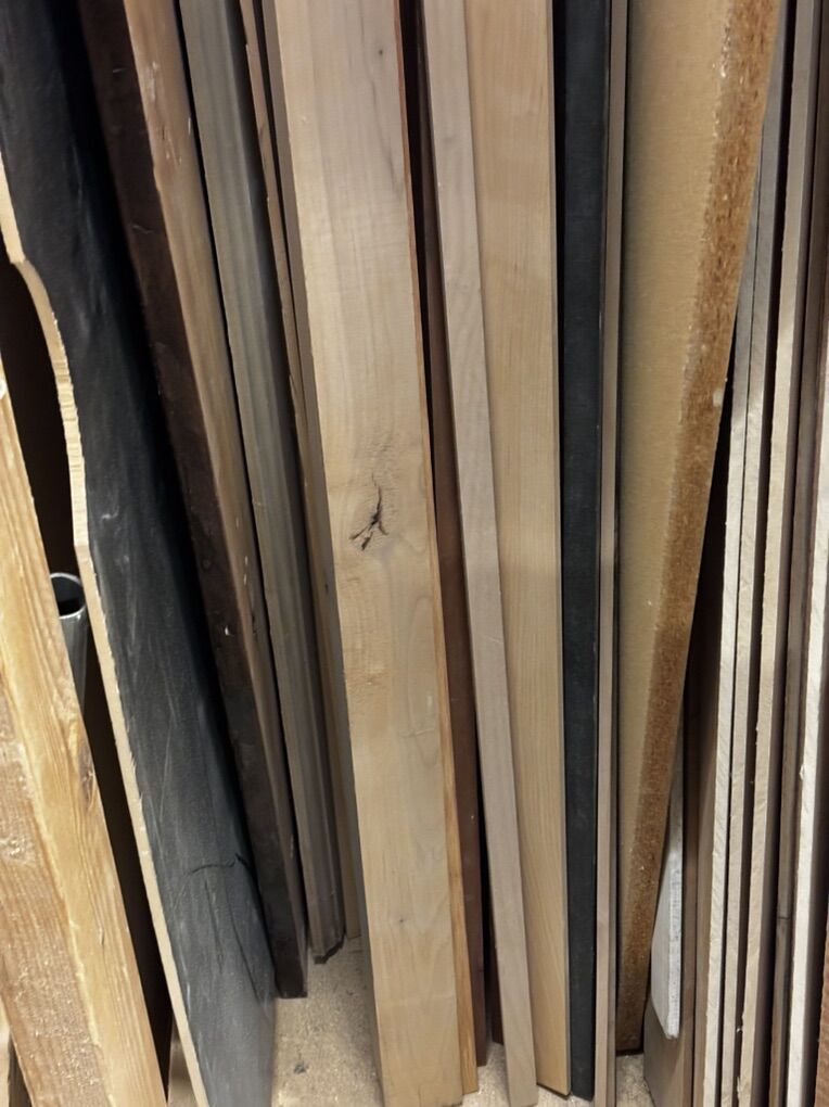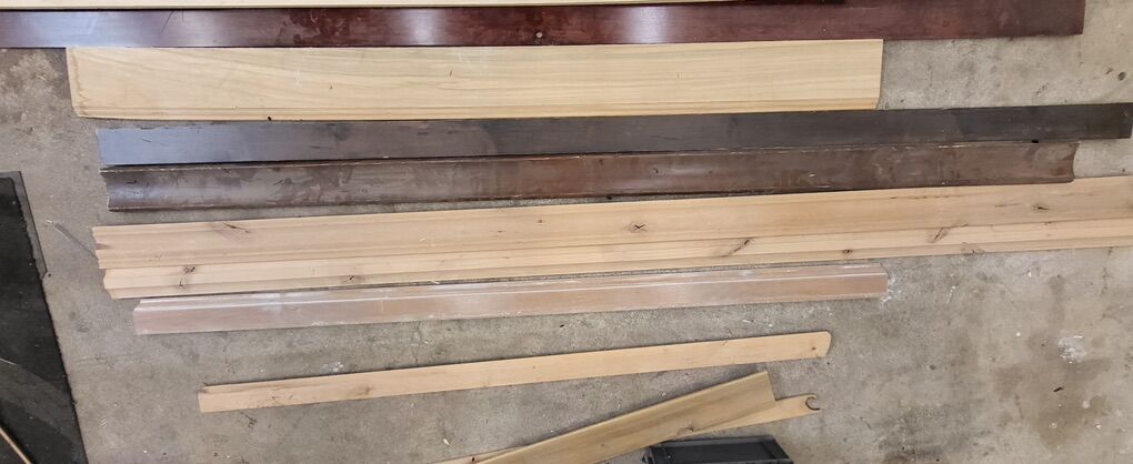 Some pieces are finished/stained hardwood, others are raw lumber. Various lengths and thicknesses. Selling as one lot.