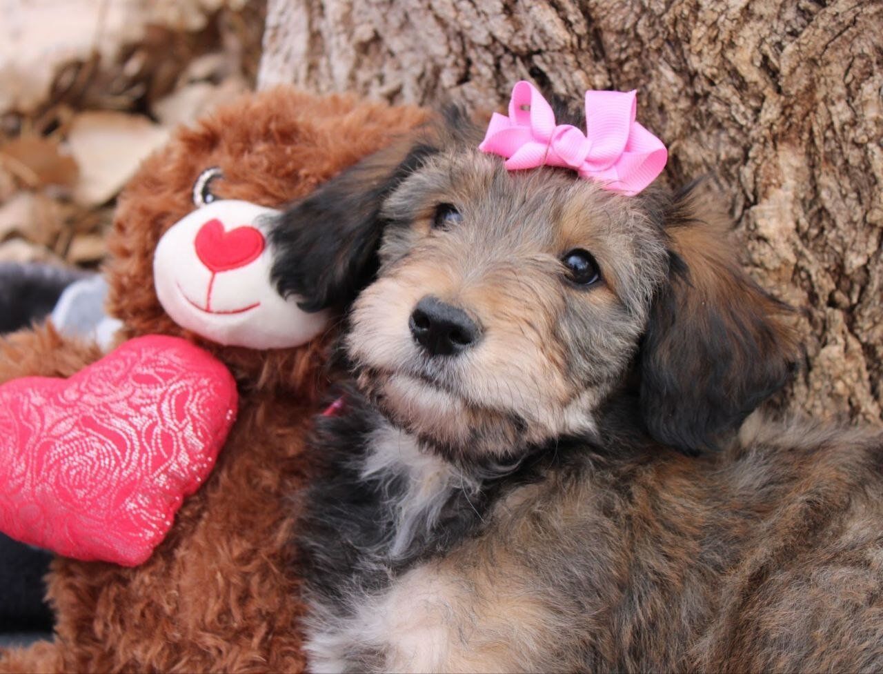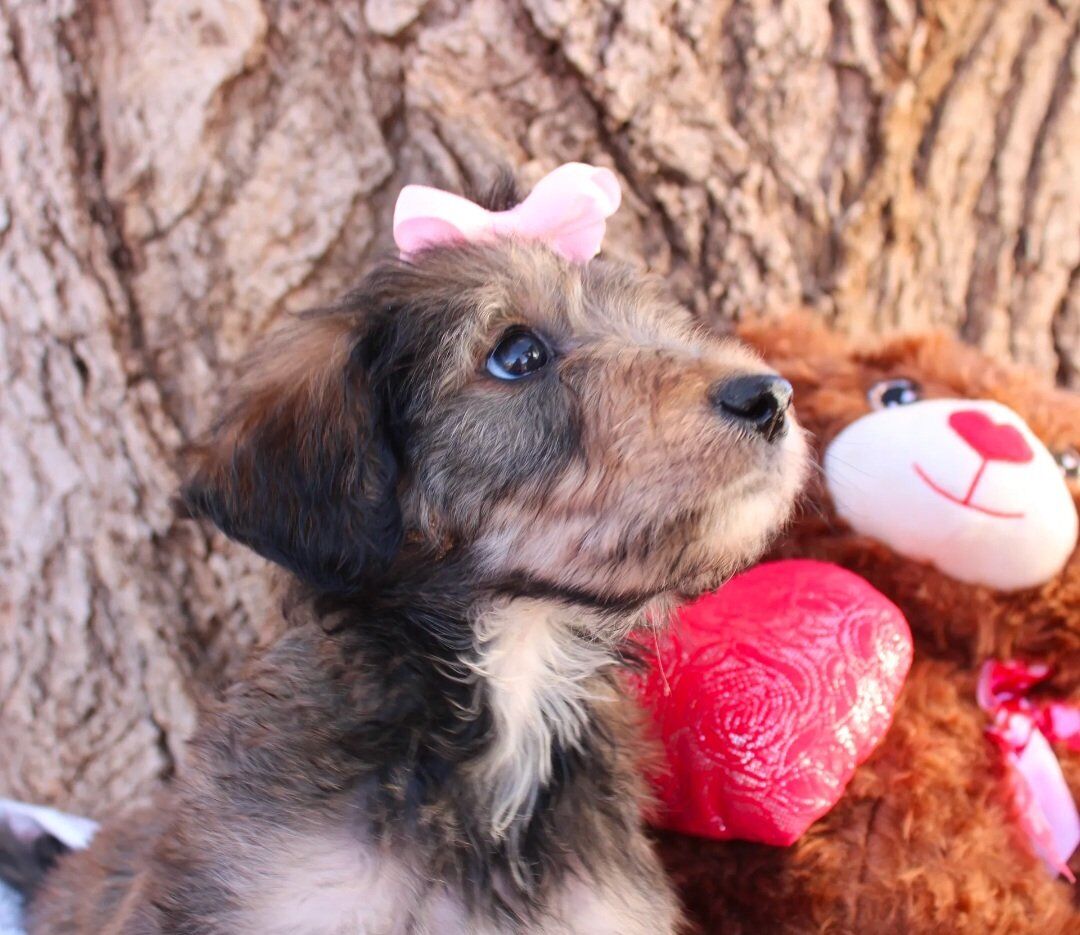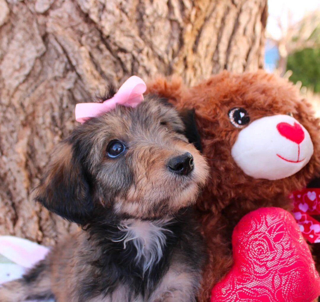 ZelleIt's Sweetie everyone! True to her name she is the sweetest of the litter. Friendly, but not pushy. Quiet but not shy. She has the best personality to be a well balanced dog. She would be a perfect ESA! So Sweetie was born without her front leg. We got her vet checked and they said she's healthy and will be able to run on her three legs. She's doing well and doesn’t let it slow her down, but we will only place her in the right home with someone understanding and committed to her needs. Sweetie has had her second vaccine and deworming, she’s making great progress with puppy pad training and learning to walk on a leash. She also is being socialized with our cat, Splash, and is growing up around farm animals. Her parents are both around 40 lbs, making her the perfect medium-sized girl full grown. The dad, Rugby, is a handsome Health tested Border collie, and the mom, Ruby, is our sweet Poodle who is AKC registered. If you think Sweetie would bring joy to your home and help you in some way, I'd be happy to chat with you. For a quicker response text me at (435-668-6267) I am happy to answer any questions you may have. In order for me to hold a puppy, I must have a $400 depost. Note; We can deliver to Provo Utah, or Las Vegas.