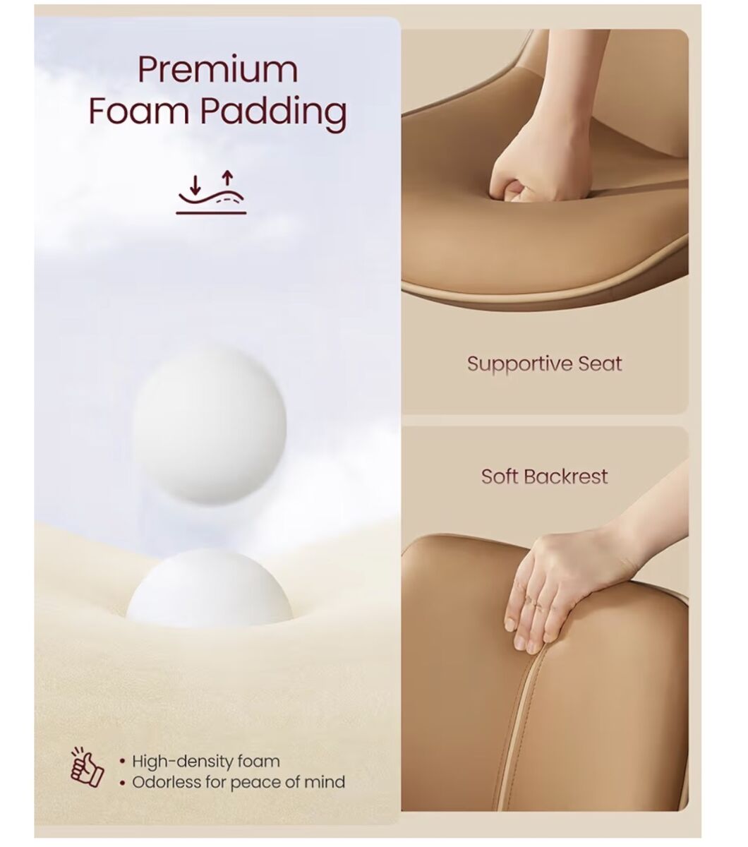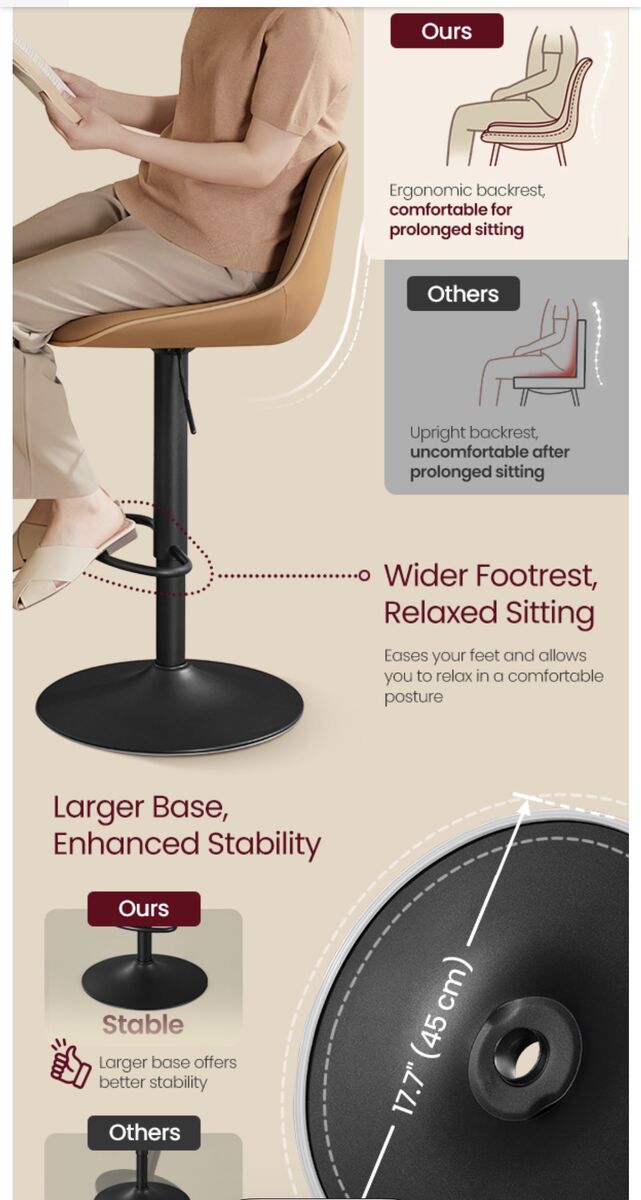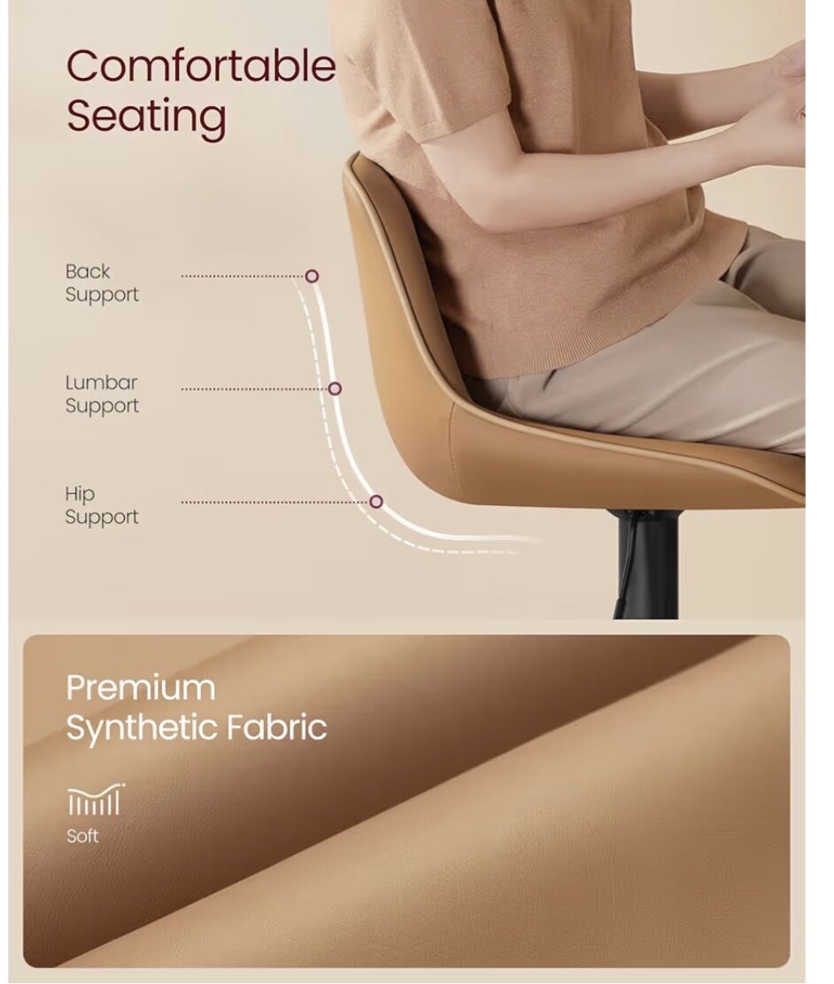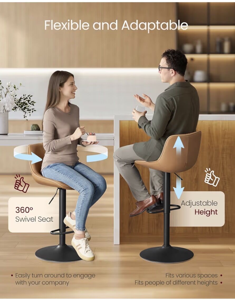 perfect adjustable height (24"-30") adapts to any setup.. smooth hydrolics, cushioned seat with foot rest help to customize to your specifics. Simple to wipe clean and look fab. See photos of all the specifics!!