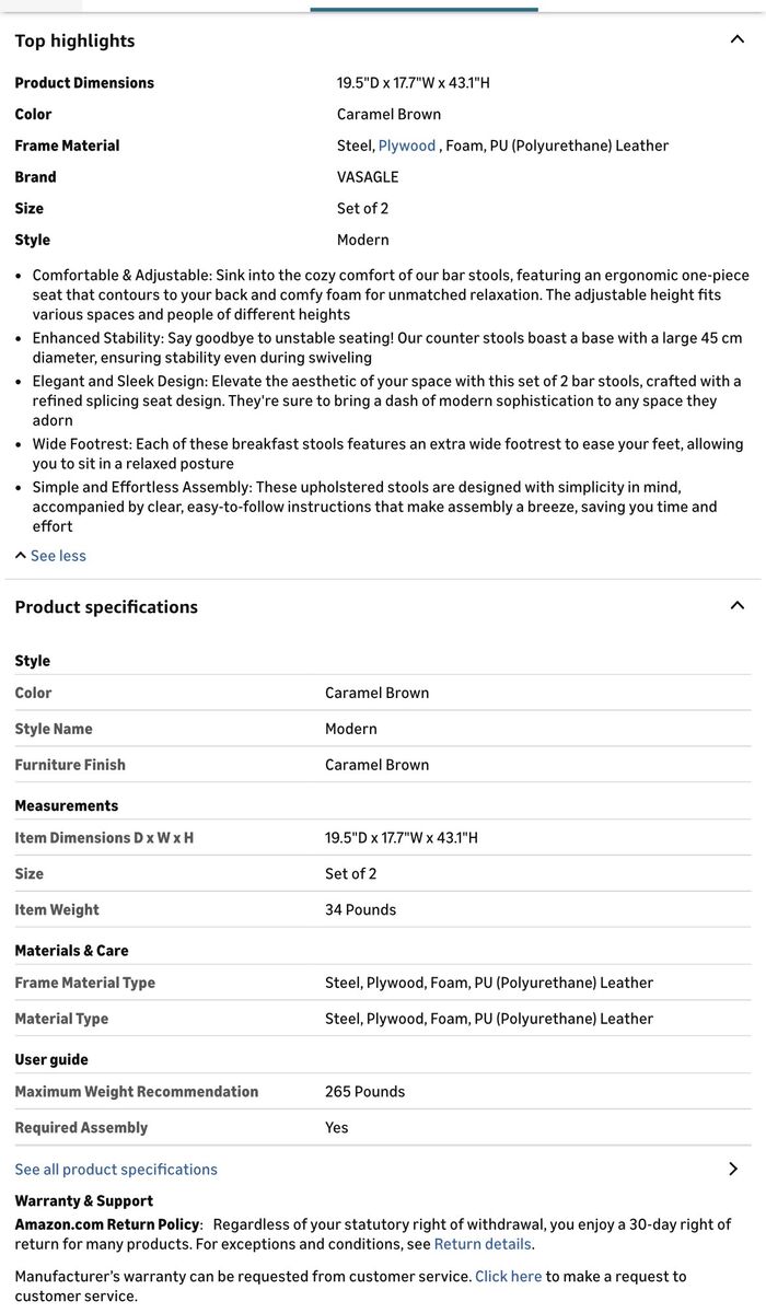Caramel brown is a rich color with contrast stitching- it brings an elevated look/feel.. black metal is a sleek accent. to match existing decor.