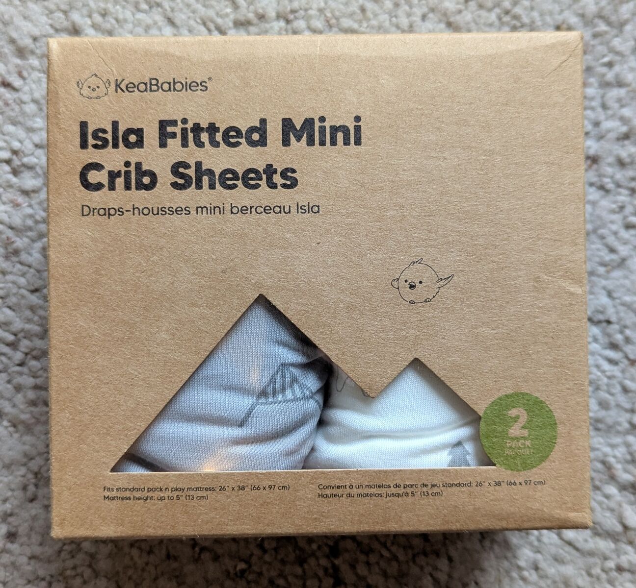 NEW in box KeaBabies 2-Pack Isla Mini Crib Sheets, Fitted Pack N Play Sheets, 38x26 (Woodland)