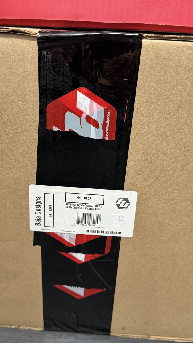TRD Pro Grille Conversion Kit for 2024-2026 Toyota Tacomas. This kit adds the Amber (yellow) lights to the grille. It uses Baja Designs S8 and S2 lights and includes all of the wiring and brackets needed. Brand new in the box never opened.