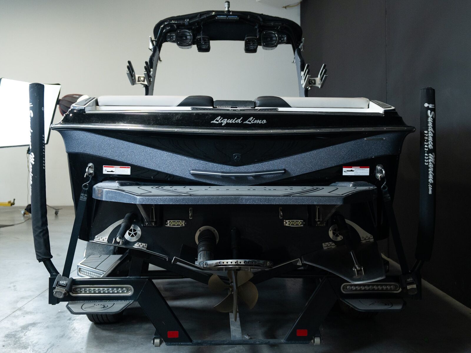 Inside, you get tons of seating, transom lounge seats, high-end detailing, a touchscreen dash, clamping board racks, and a premium audio system with tower speakers. This build includes a tandem-axle trailer and all the upgraded features you want in a late-model Ri.