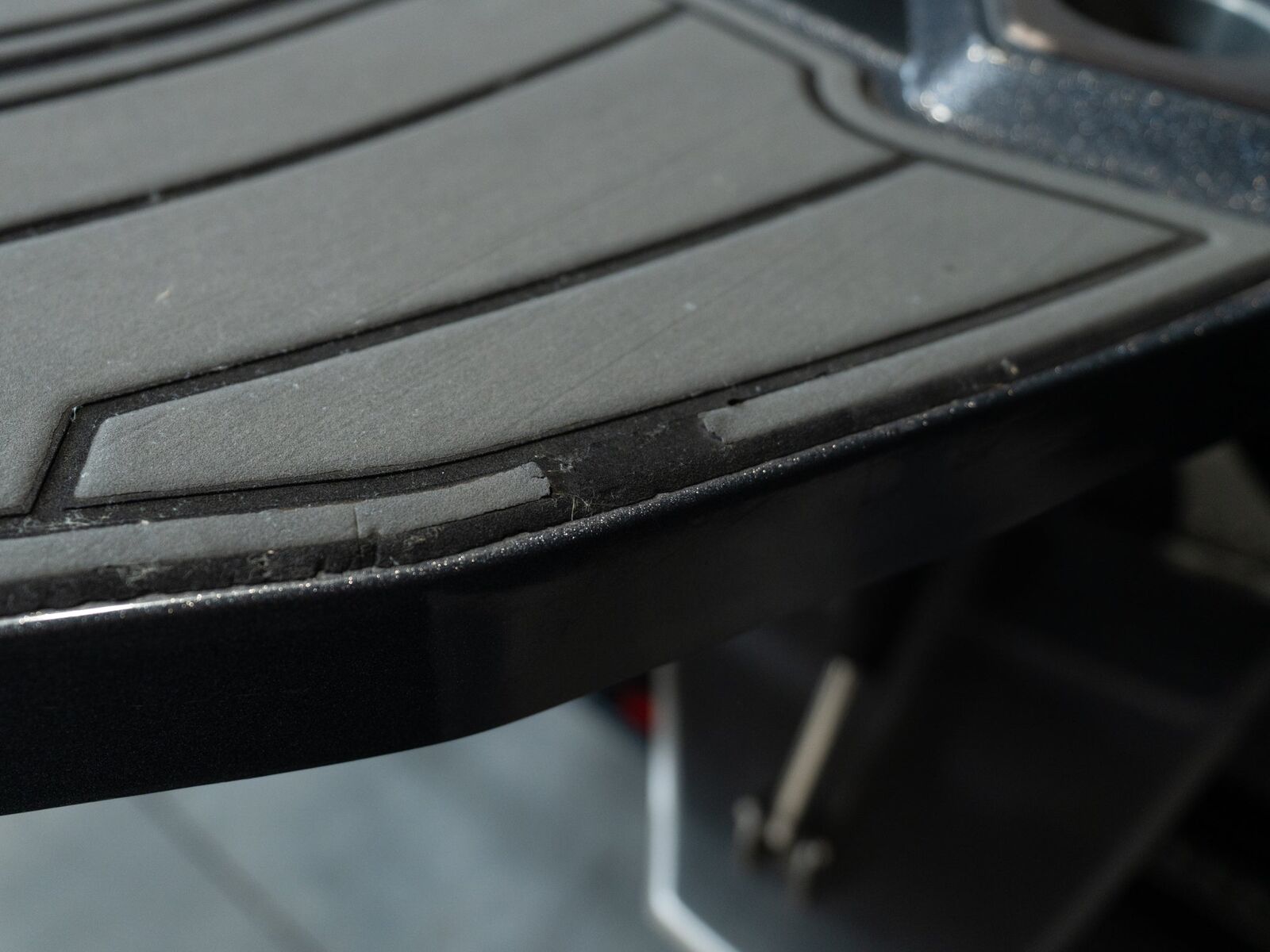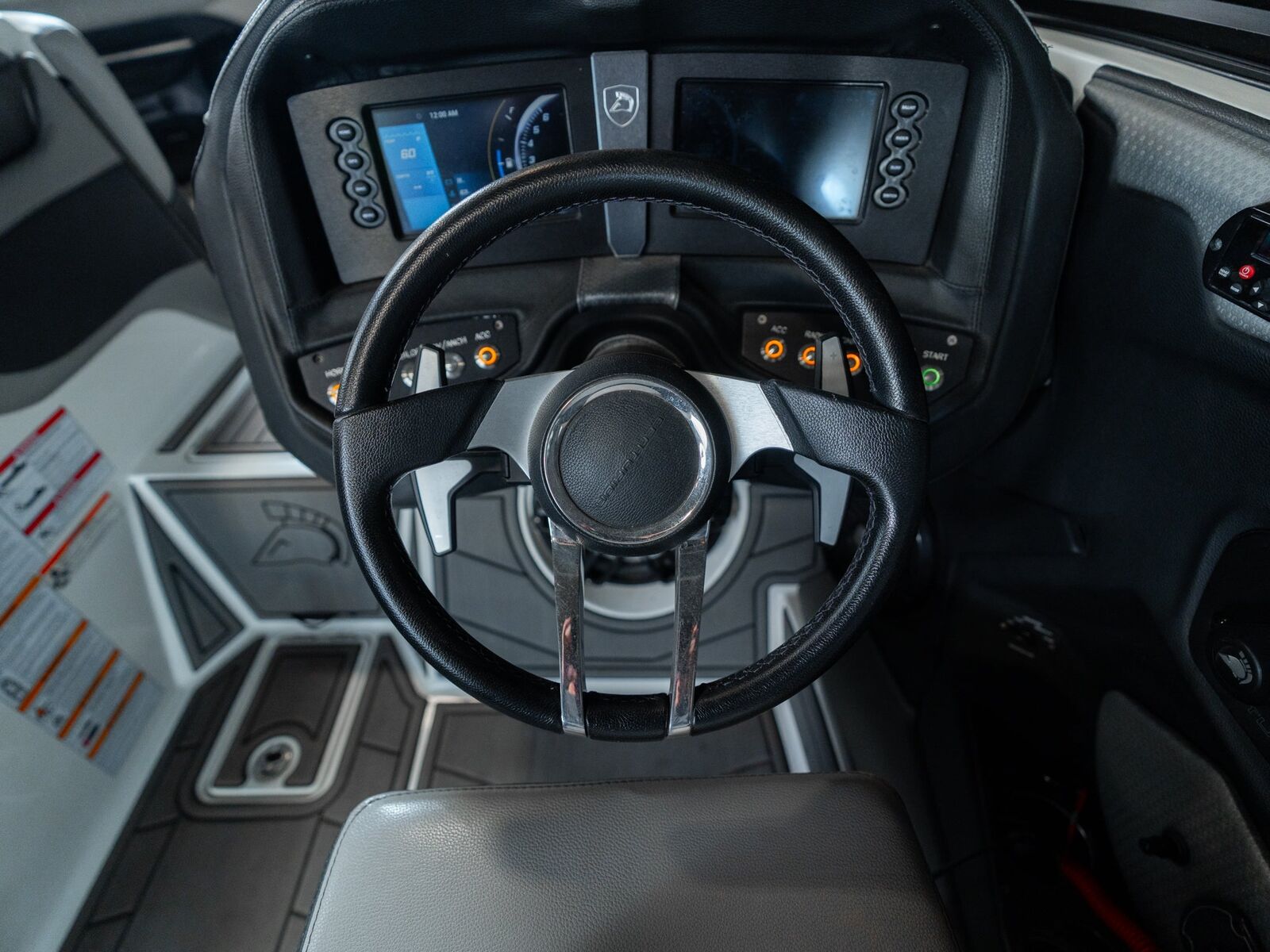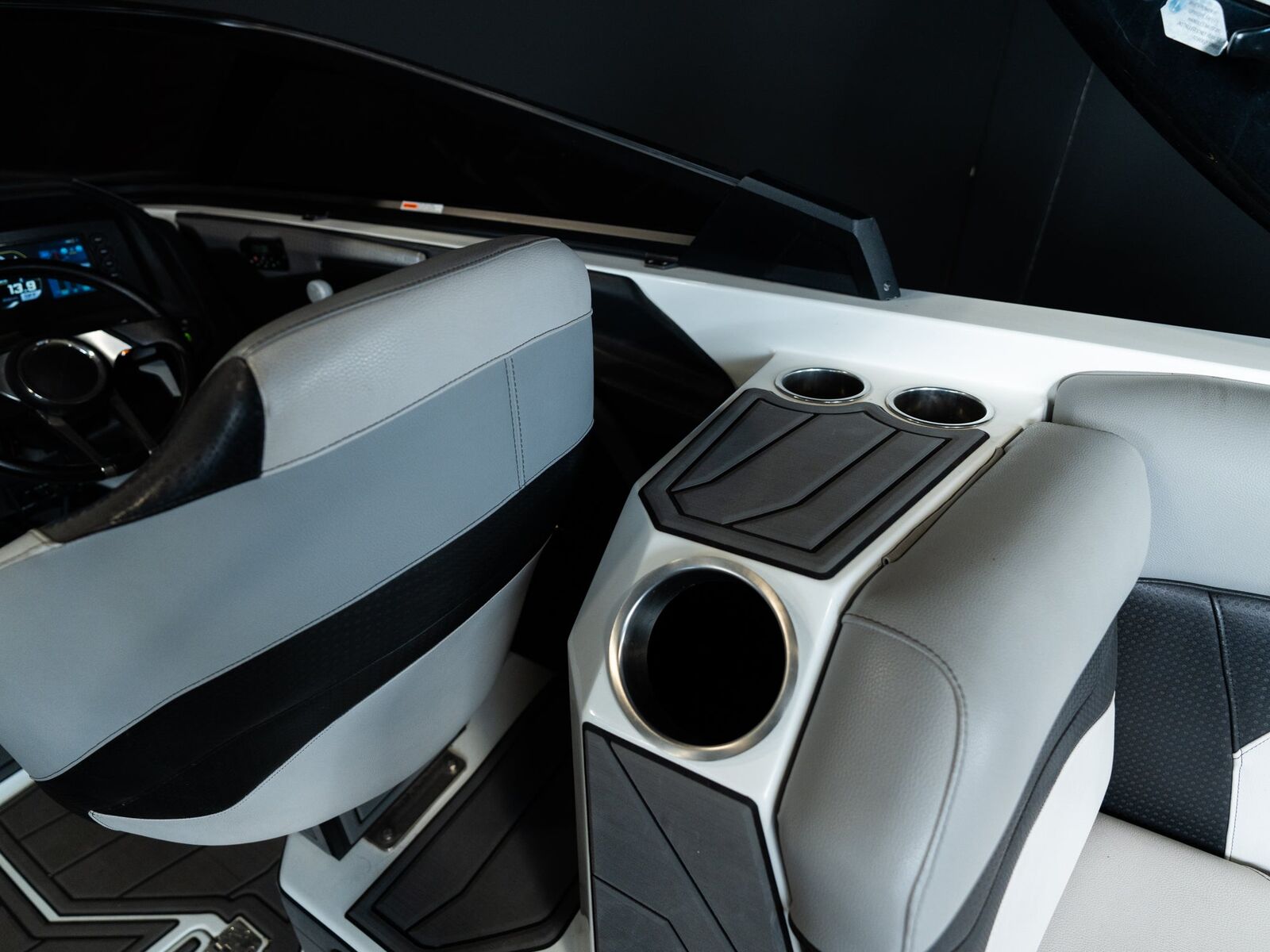 Finished in a sharp gray/black exterior with a clean, modern interior, this boat has a premium look that stands out without being loud. The vinyl, flooring, and gelcoat are in excellent condition, and the deep cockpit gives everyone a comfortable, secure ride.