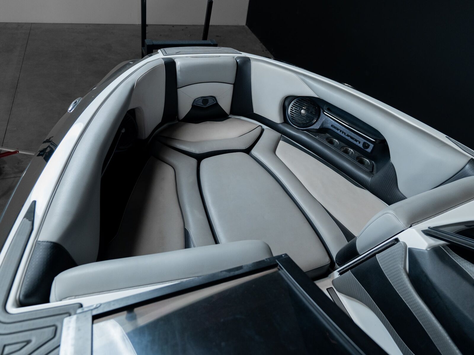 This 2018 Centurion Ri257 in a sleek Black / Gray finish is a flagship-level surf boat designed for riders who want maximum wave performance, huge interior space, and a luxury feel from bow to transom. At 25′7″, the Ri257 is built to throw one of the biggest, longest, and most powerful surf waves ever produced — even with a full crew onboard.