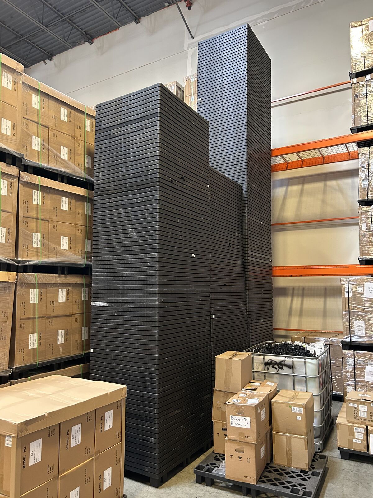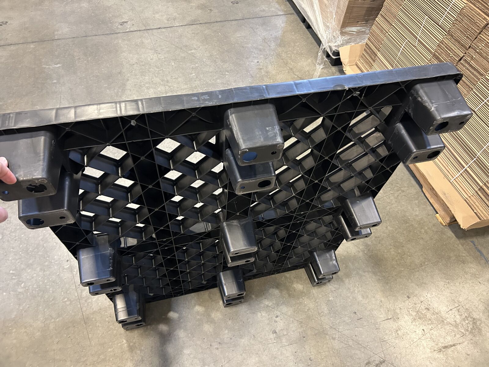 Selling 48" x 40" commercial-grade black plastic pallets in great condition. Buy as many or as few as you need.