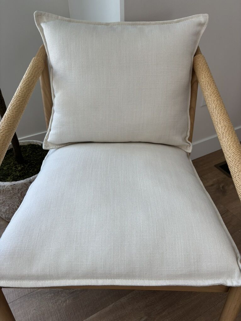 ZelleThis beautiful, modern accent chair is in excellent, like-new condition — rarely used, spotless, and looks just like the day it was purchased. From a smoke-free, pet-free home with no odors, stains, rips, or wear.