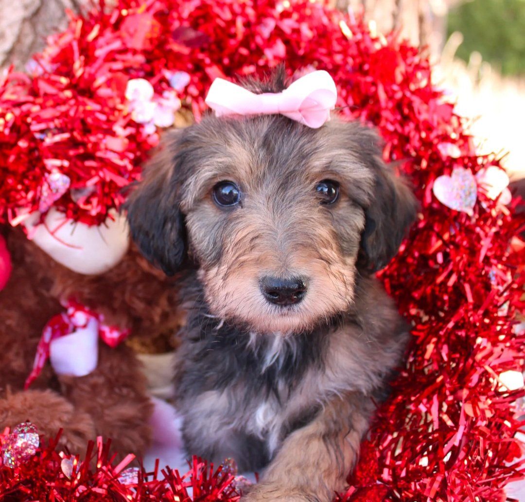 ZelleIt's Sweetie everyone! True to her name she is the sweetest of the litter. Friendly, but not pushy. Quiet but not shy. She has the best personality to be a well balanced dog. She would be a perfect ESA! So Sweetie was born without her front leg. We got her vet checked and they said she's healthy and will be able to run on her three legs. She's doing well and doesn’t let it slow her down, but we will only place her in the right home with someone understanding and committed to her needs. Sweetie has had her second vaccine and deworming, she’s making great progress with puppy pad training and learning to walk on a leash. She also is being socialized with our cat, Splash, and is growing up around farm animals. Her parents are both around 40 lbs, making her the perfect medium-sized girl full grown. The dad, Rugby, is a handsome Health tested Border collie, and the mom, Ruby, is our sweet Poodle who is AKC registered. If you think Sweetie would bring joy to your home and help you in some way, I'd be happy to chat with you. For a quicker response text me at (435-668-6267) I am happy to answer any questions you may have. In order for me to hold a puppy, I must have a $400 depost. Note; We can deliver to Provo Utah, or Las Vegas.