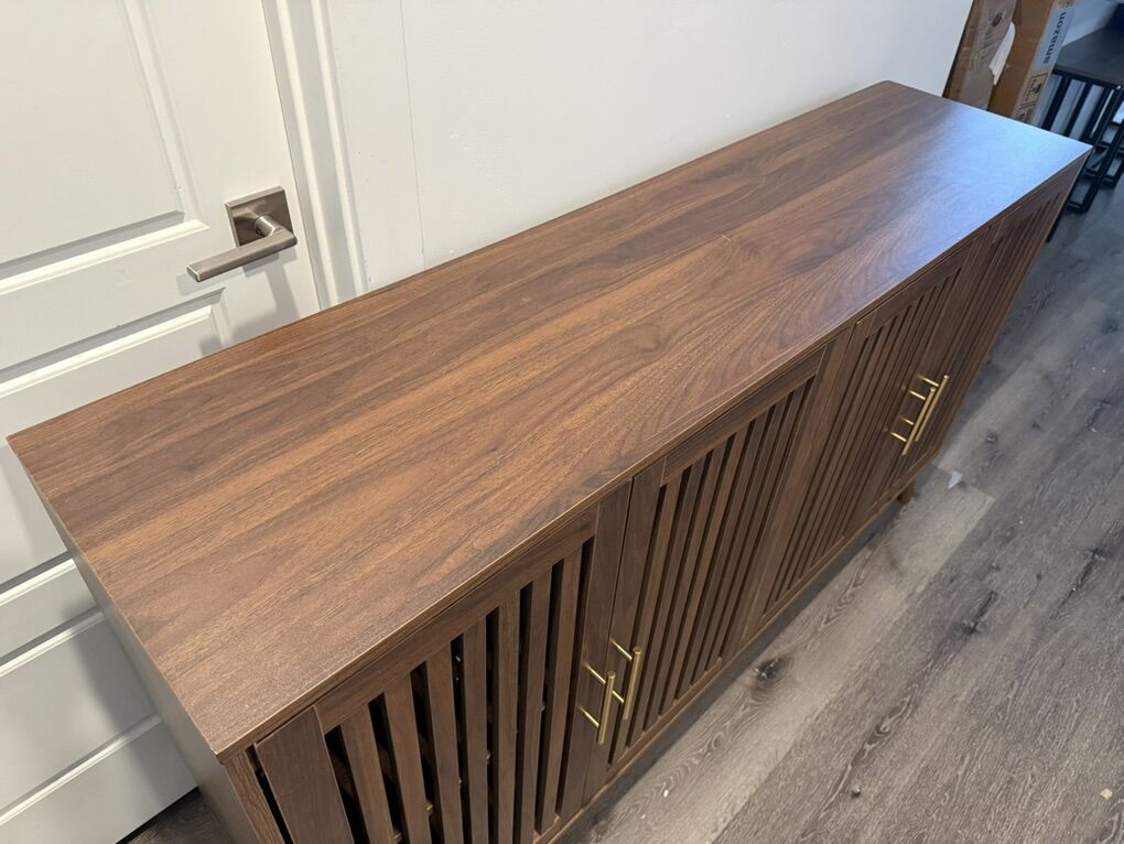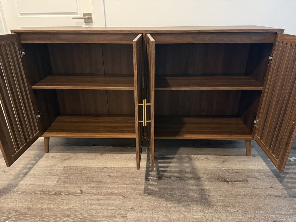 VenmoBrand New 63 Long Sideboard Buffet with 4 Slatted Doors, Farmhouse Buffet Storage Cabinet with Adjustable Shelves, Coffee Bar Cabinet for Entryway, Kitchen, Dining Room, Living Room, Walnut