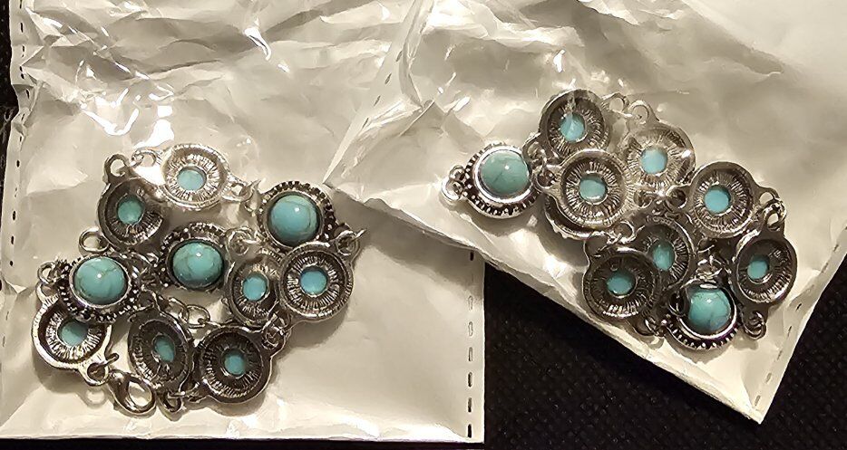 Three - simple dainty bracelets Three - spider keychains Two - "Remember who the ....." bracelets Two - "Don't let the ...." bracelets Two - turquoise bracelets One - green and gold necklace and ring set One - Blue and gold bracelet One - necklace with three crosses One - necklace with three stars One - necklace with bows One - necklace with big star One - multicolor necklace and earring set