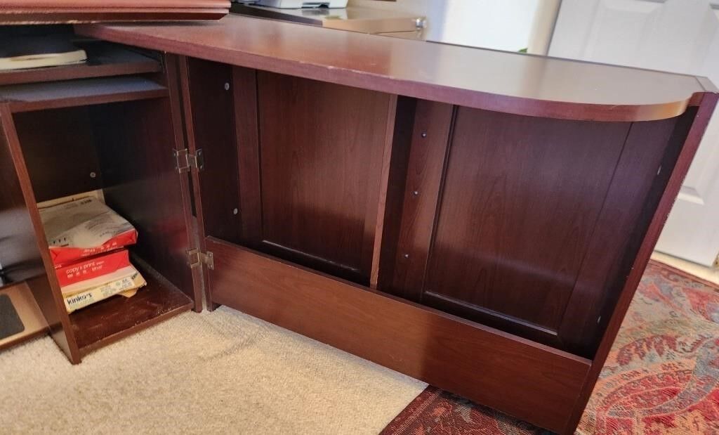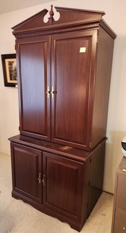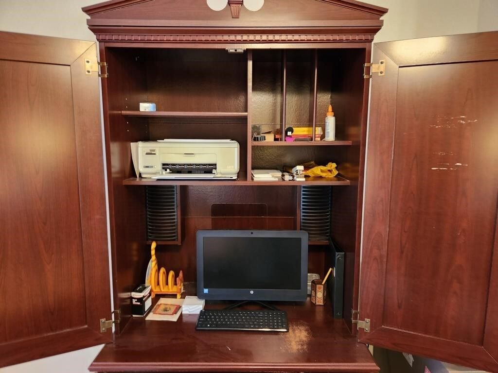 This desk/armoire is perfect for a quality space to work and store office supplies but not take up the space when you want to close it all up.