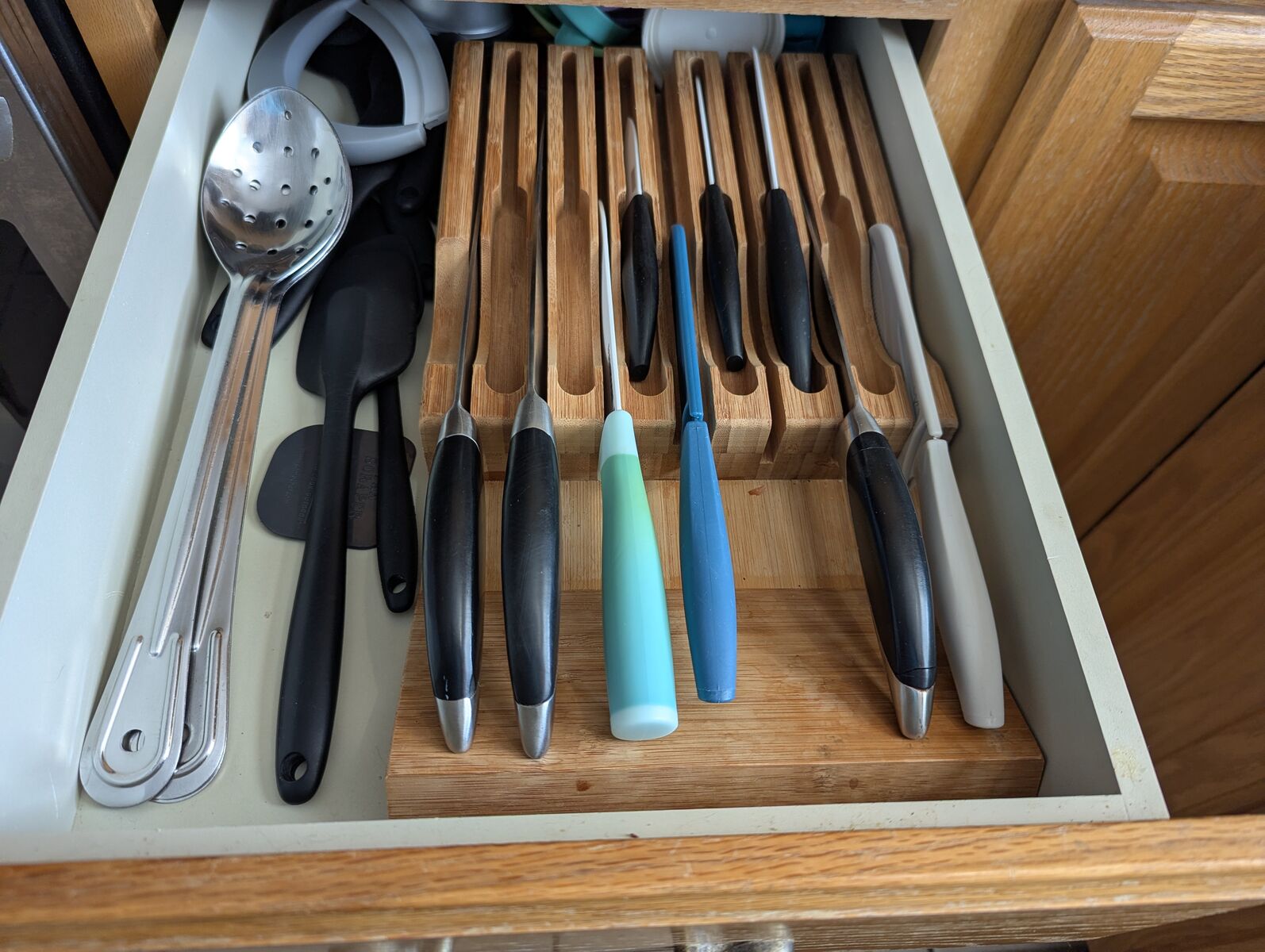 A perfect drawer knife block insert for organized kitchens.