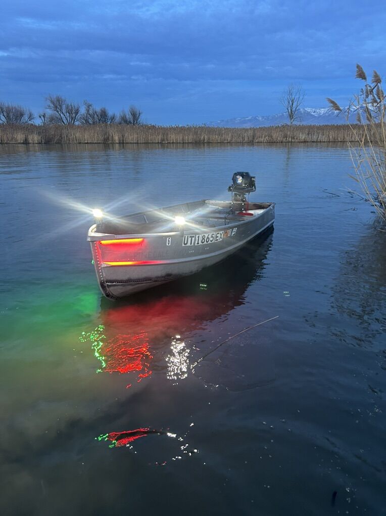 11 foot boat with a 5 hp air cooled motor can be run in super shallow water. Also is wired with nav lights as well as front pod lights they will come with it. It does not have a trailer but It fits perfect in a truck bed and is pretty light. It also has a front deck for fishing or can be swapped out for a seat. The registration is current until the end of the year. $600 obo