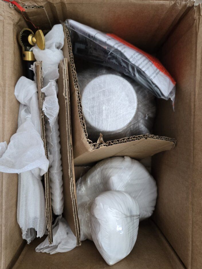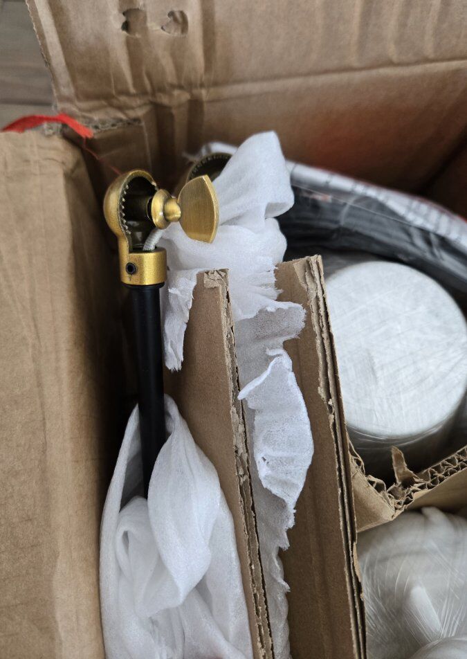 New in box adjustable wall lamp with adjustable arm. Black with brass.