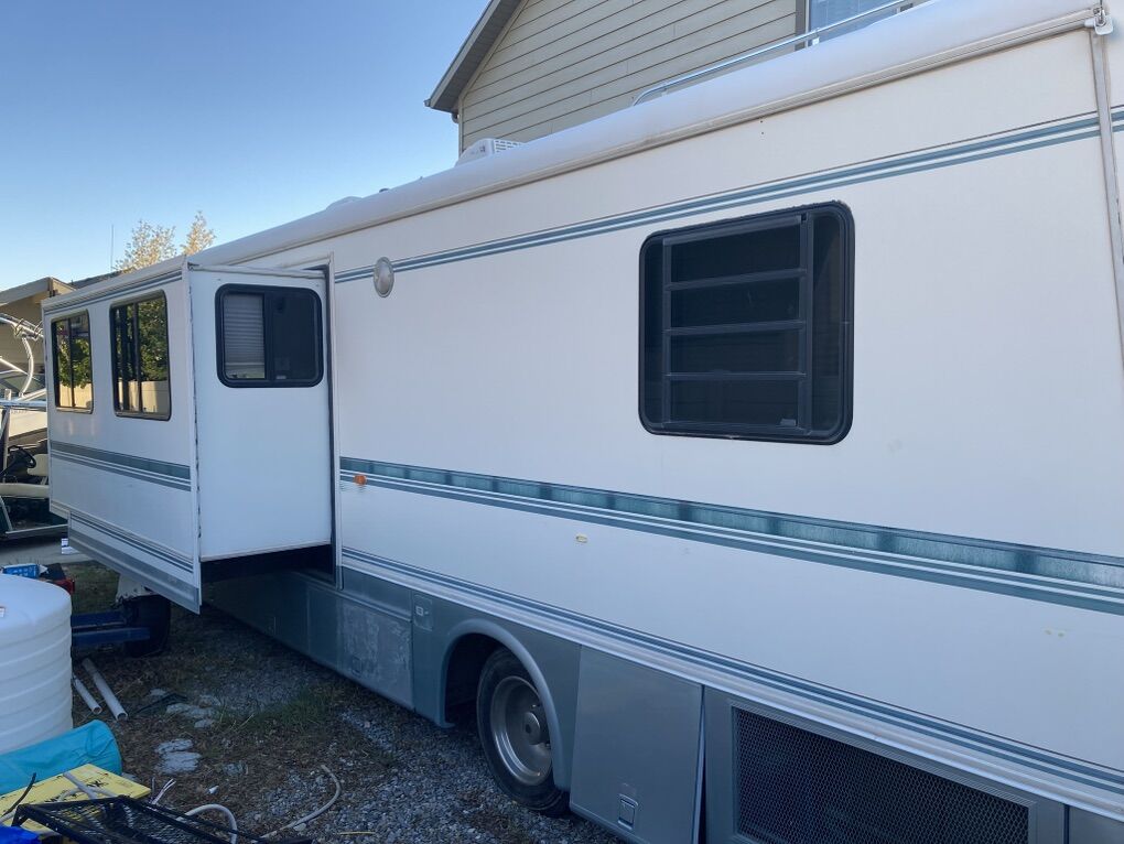 ApplePay1994 Newmar Diesel pusher. Spartan Chassis. 34’ long. One large slide out. Sleeps 8. New Fridge. New Cooktop. New Microwave Oven combo. Two AC units. Solar panels installed. Needs: tires have good tread, but getting old in age, time for a new set. Shocks could also use a switch out; great air ride chassis. Generator works but needs a tune-up, it’s sat for too long. Batteries have sat for a while too, they probably need to be refreshed. Our family rebuilt the interior and had some great adventures; time for a new family to have some fun with it.