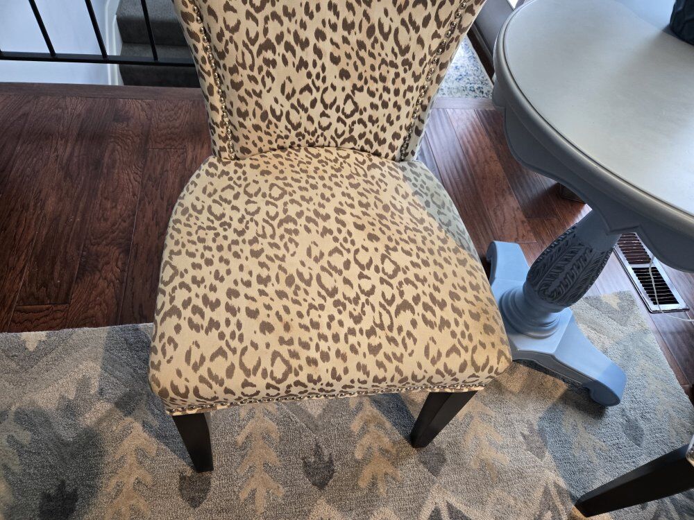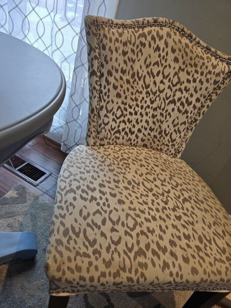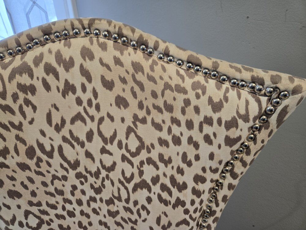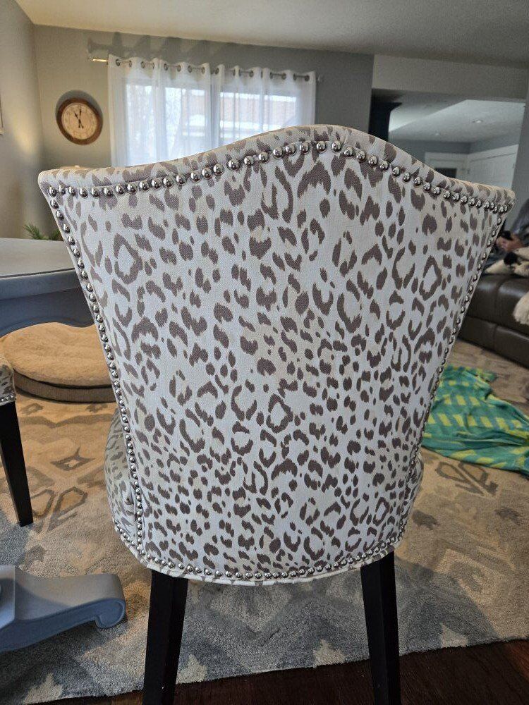 Venmo2 slipper chairs in brand new condition. neutral grays in beige with nail head detail.
