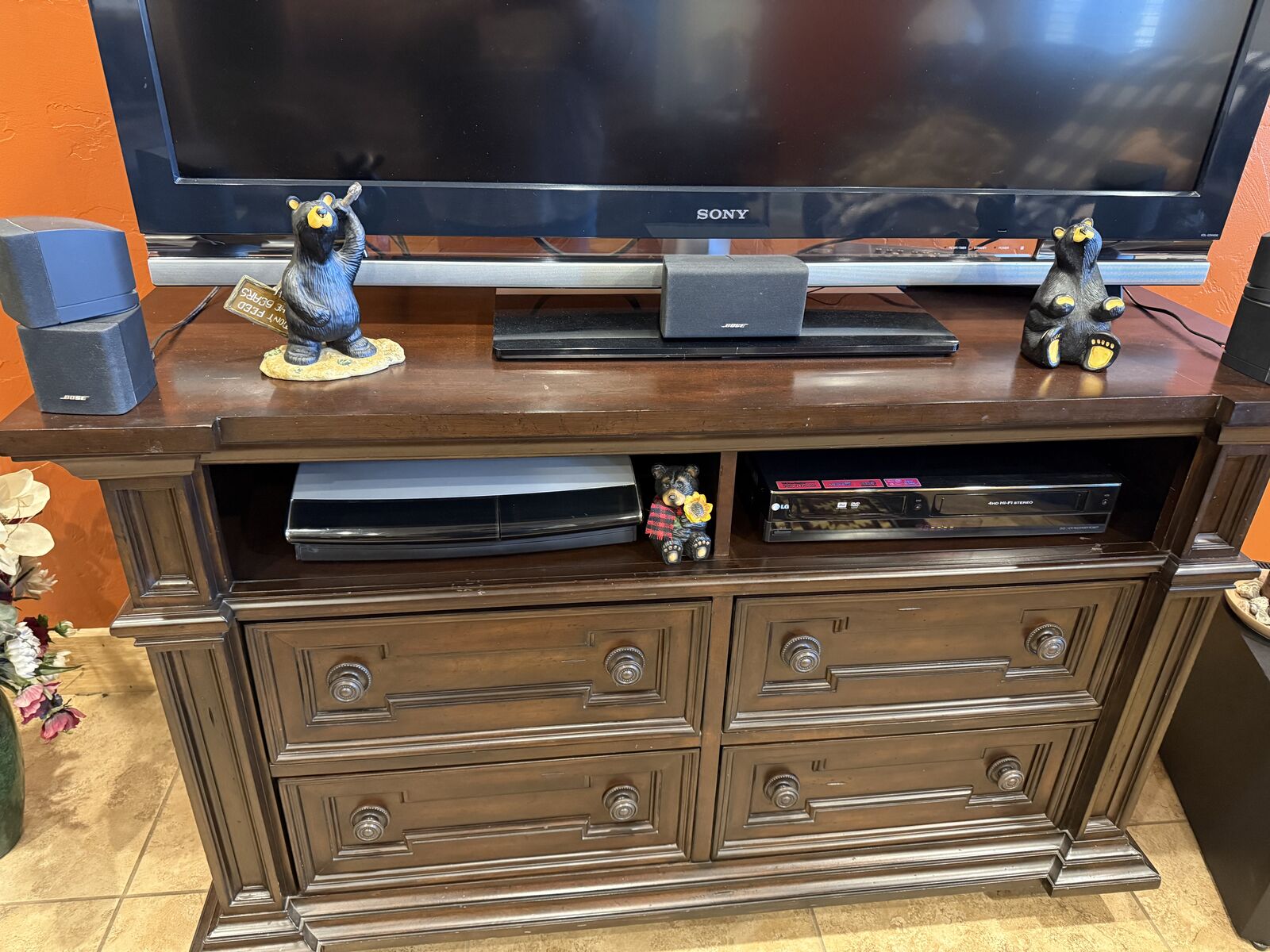 Selling Solid wood cabinet, 53 inch Sony Bravia tv, Lifestyle Bose entertainment system with bass and 5 speakers. Whole system is in great condition. All for $1200 (VCR NOT INCLUDED)