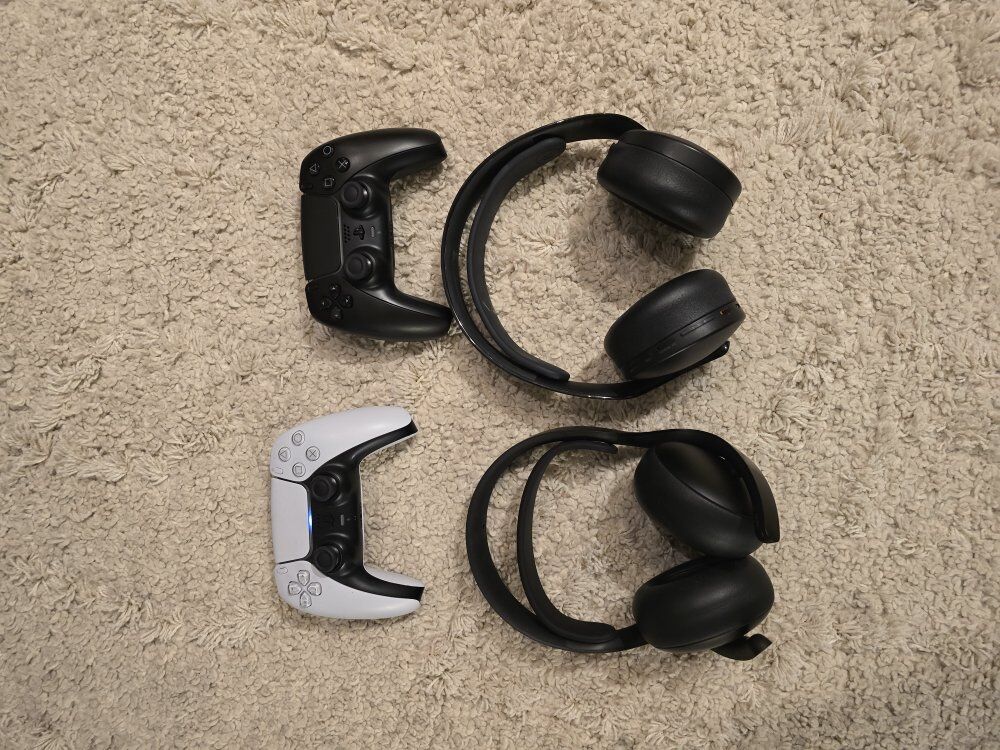 Includes power/charging cables, two controllers, two wireless h Headsets, disc drive, and vertical stand.