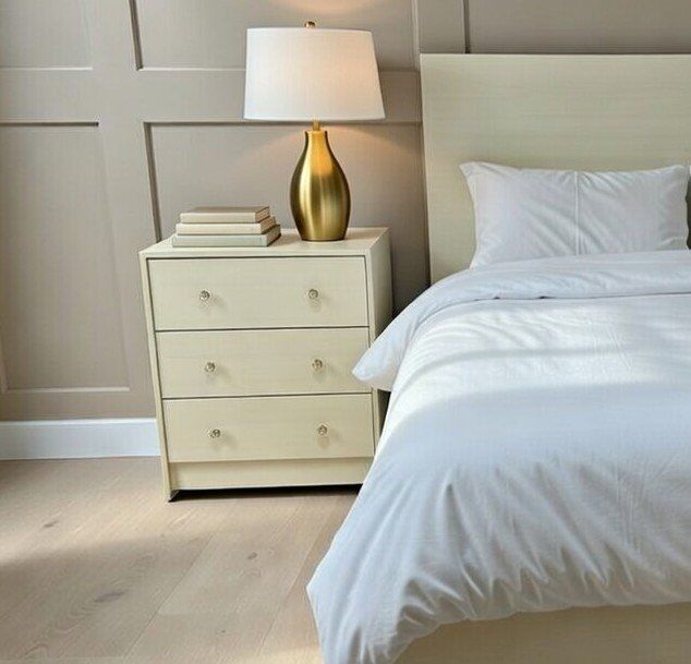 Solid Wood! Not the cheap IKEA stuff! We just don't have space for these! Beautiful, made of solid wood. Cute gold and opal clover handles. Has a fresh coat of very light beige, almost off-white paint. All drawers operate well and are clean with no major stains. Has some very mild character marks, but, overall this is a great little set, and is pretty Tall.