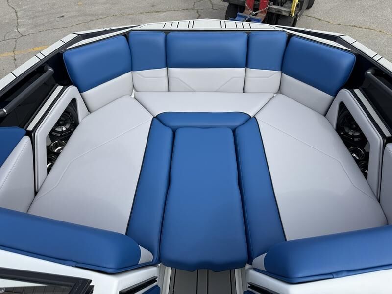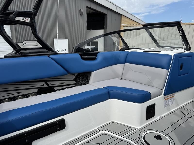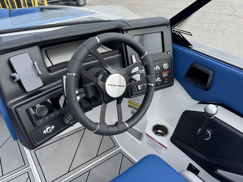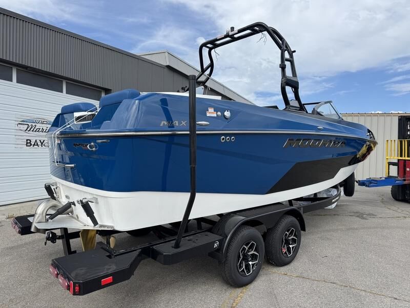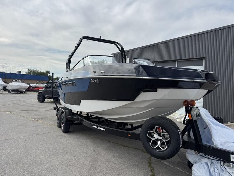 2025 Moomba Max with Raptor 450 engine. This boat comes with tower speakers, board racks, bimini, surf system, surf exhaust pipe, tandem axle Boatmate trailer.