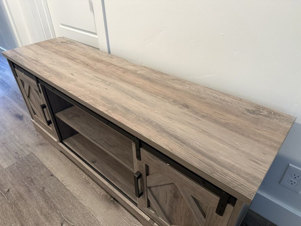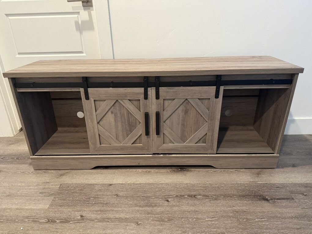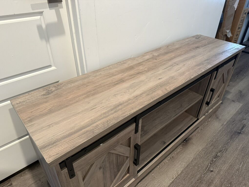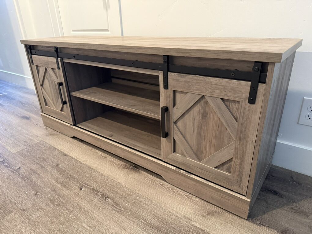 VenmoBrand New Farmhouse Wood TV Stand for 32-65 Inch TV, Sliding Barn Door Entertainment Center, Grey