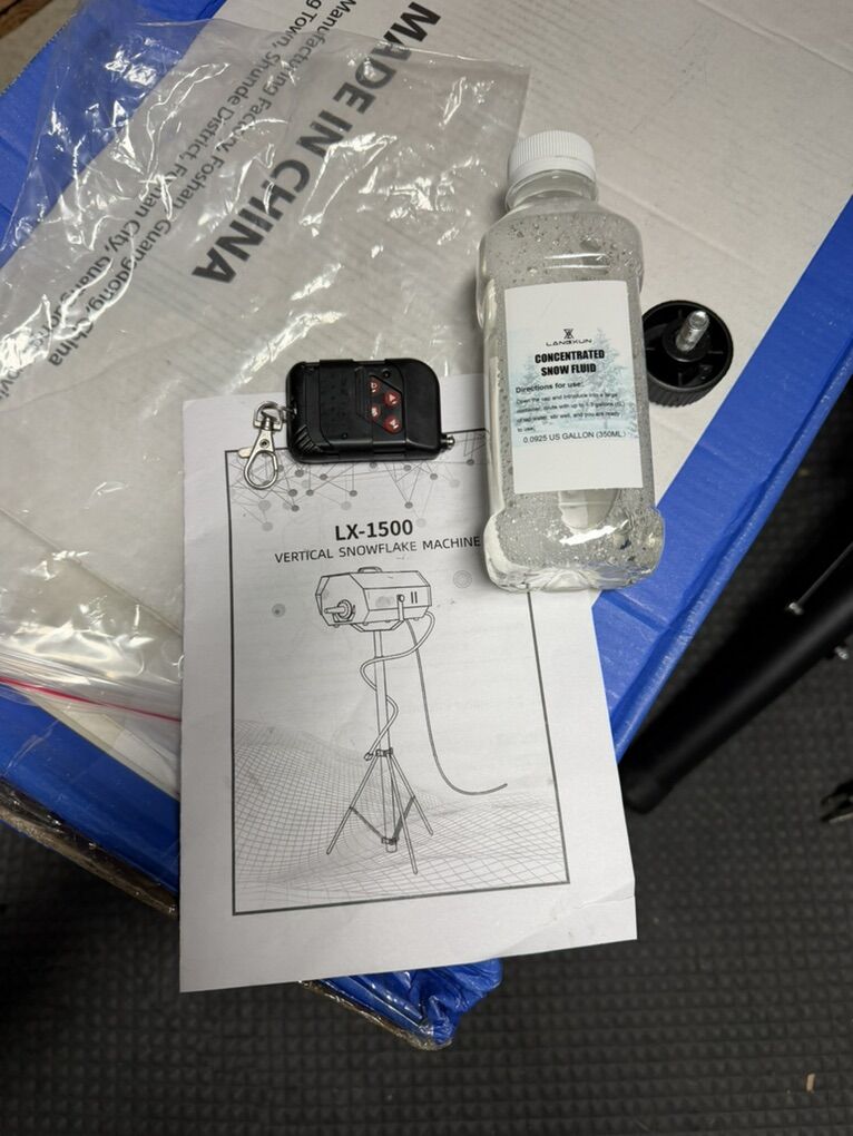 Includes: • Remote control • Snow fluid • Stand