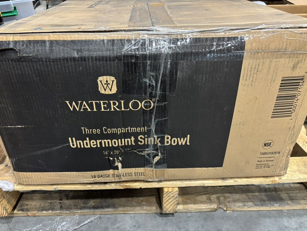ZelleBrand New 3 Compartment Waterloo Under Mount Sink Each bowl measures 20”x16”x12” 18 gauge stainless steel Overall dimensions 56”x25”x12”