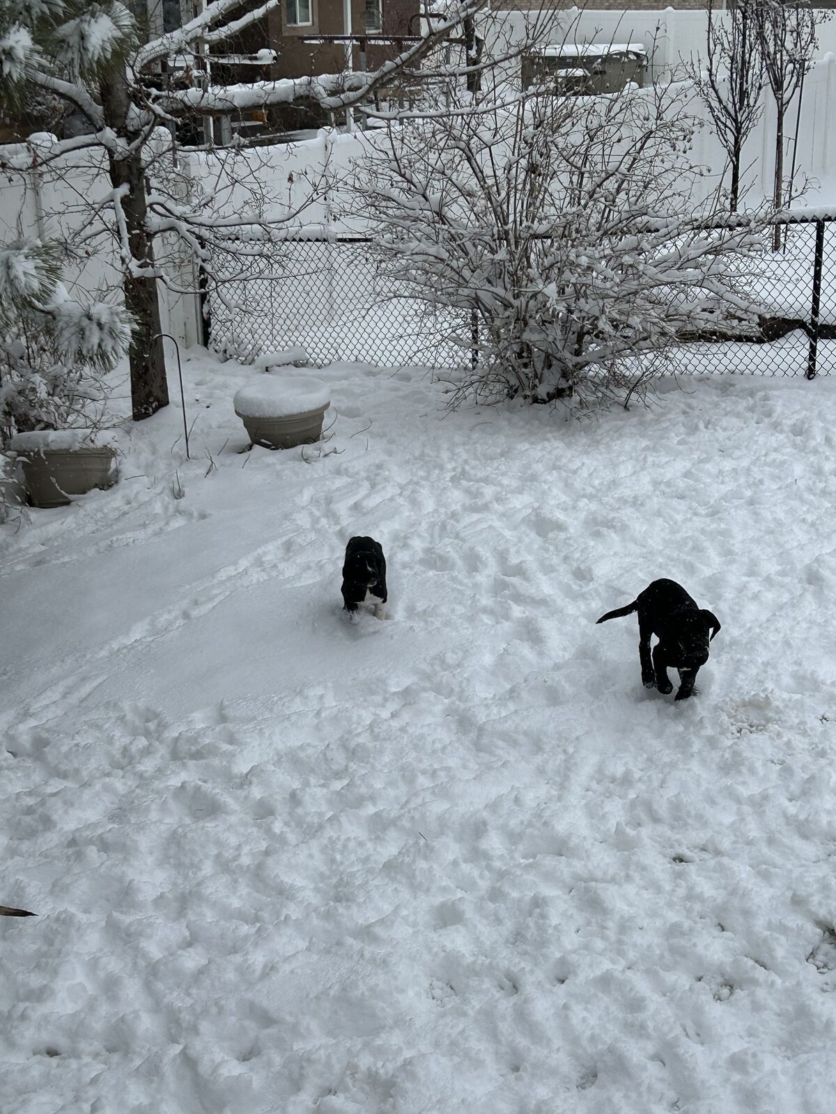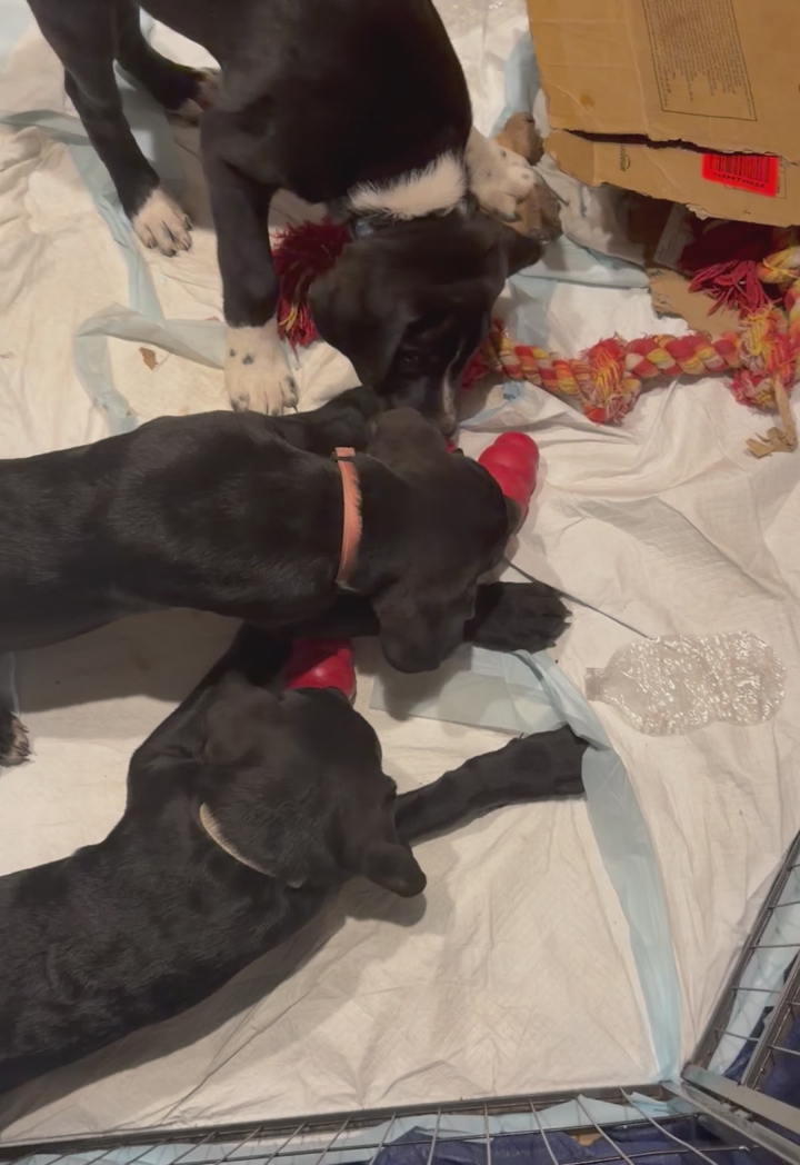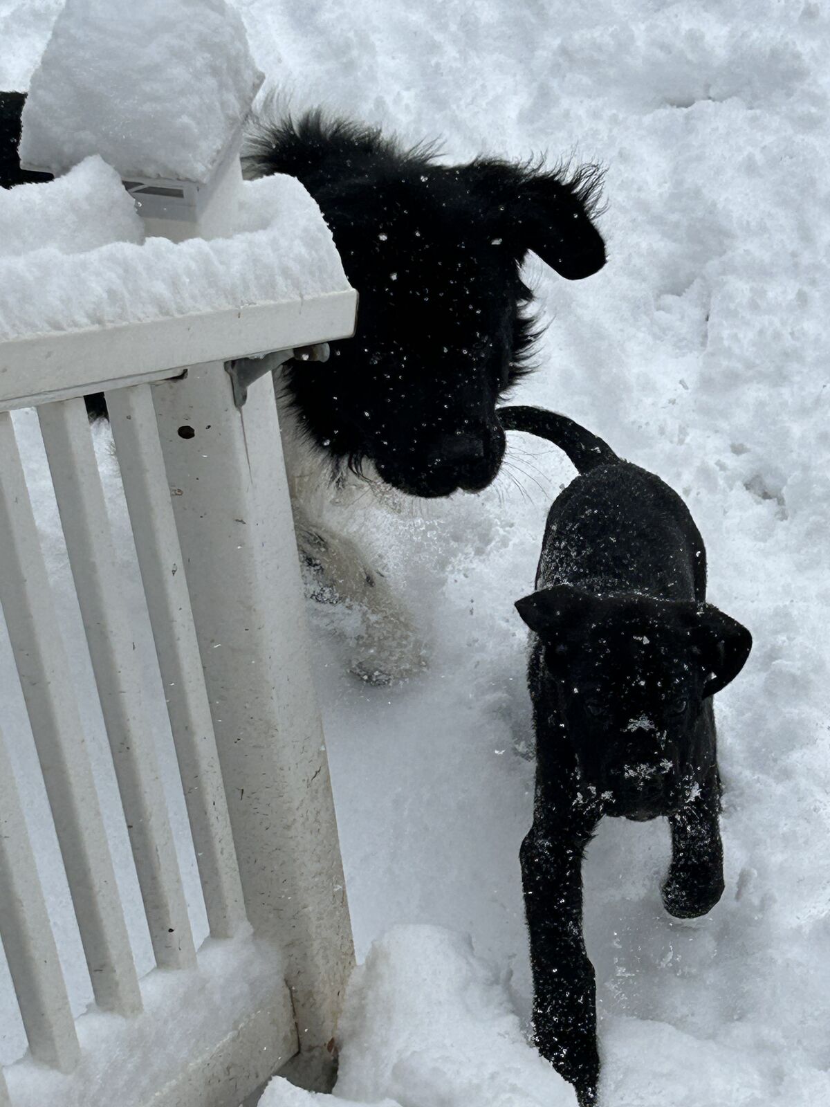 They will look more like Danes. We’ve been taking them outside to get them use to that. They love running around. Working on potty training. We let them play in the backyard. They’ve learned stairs. This is a great winter for potty training where we have no weather. But definitely not put off by snow! That’s the newf in them. See pics!