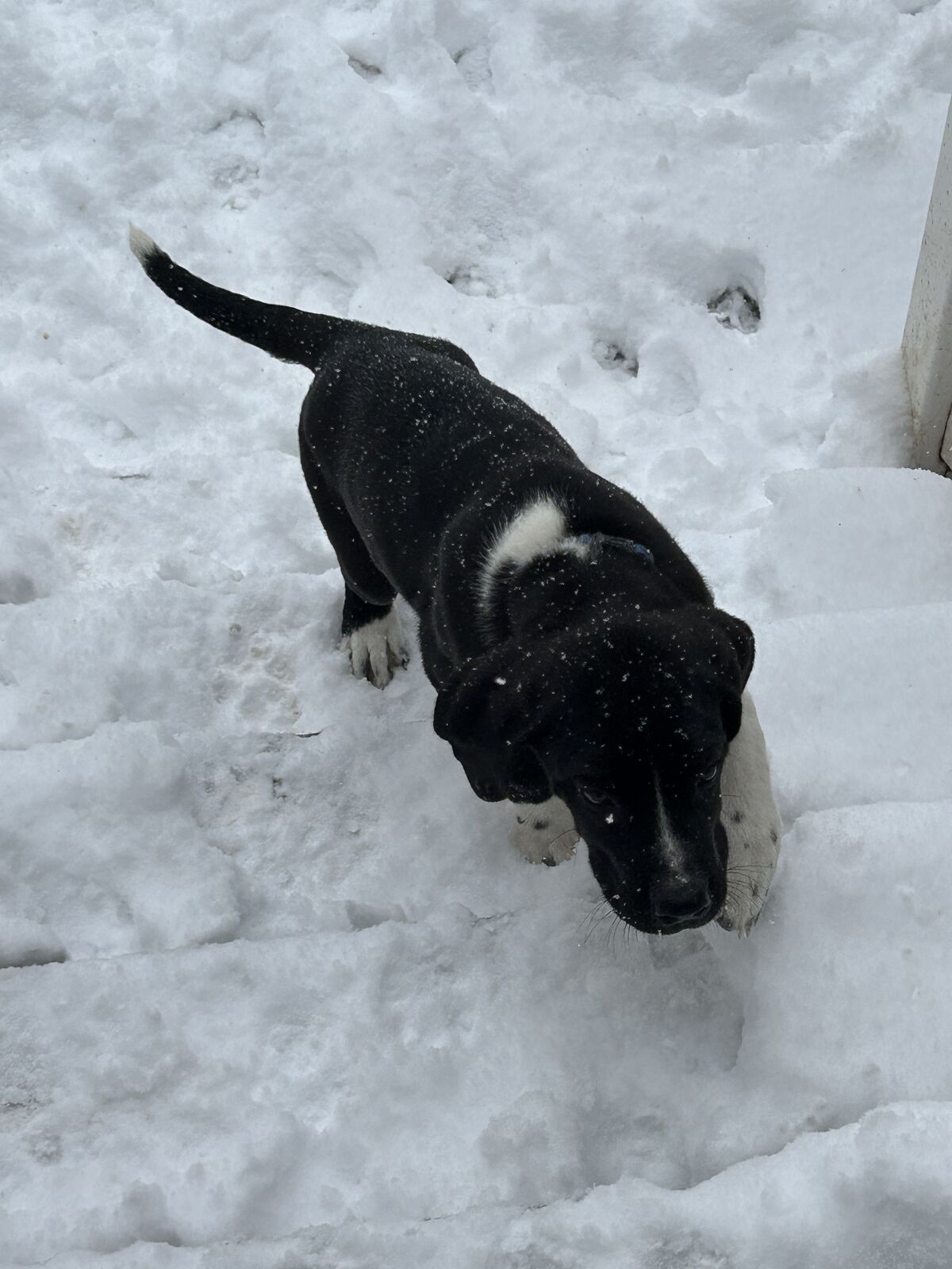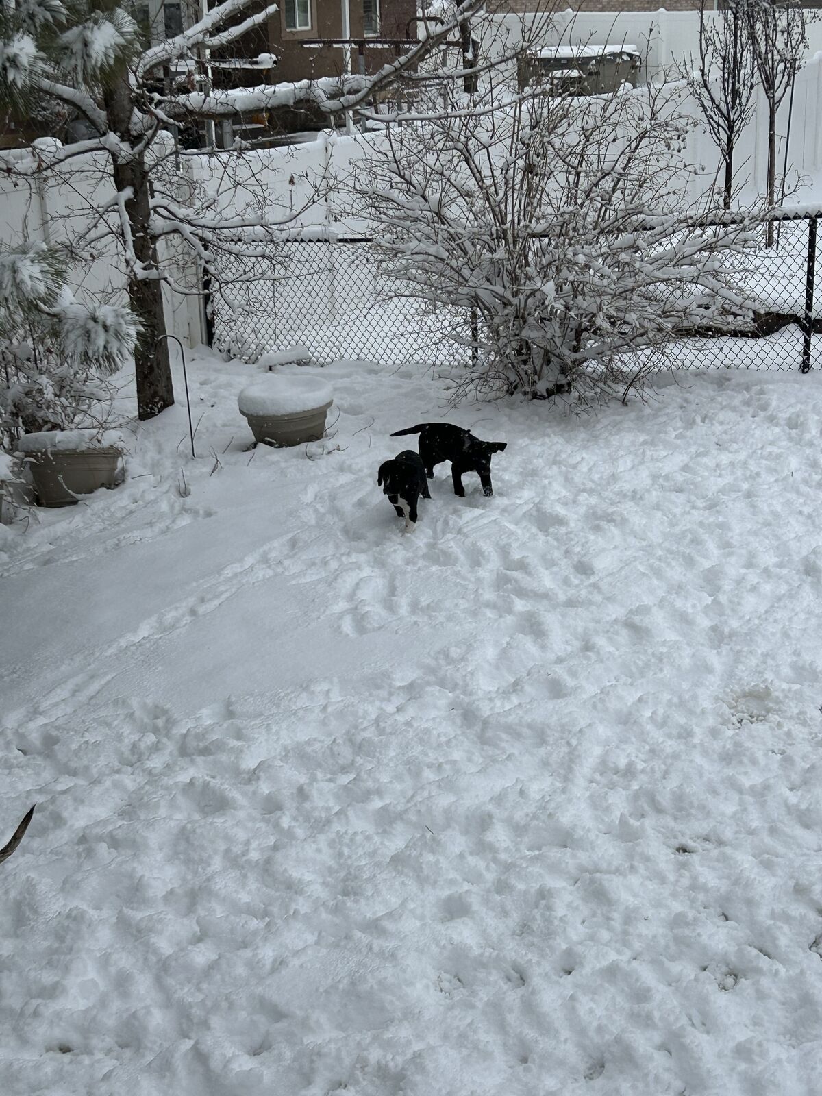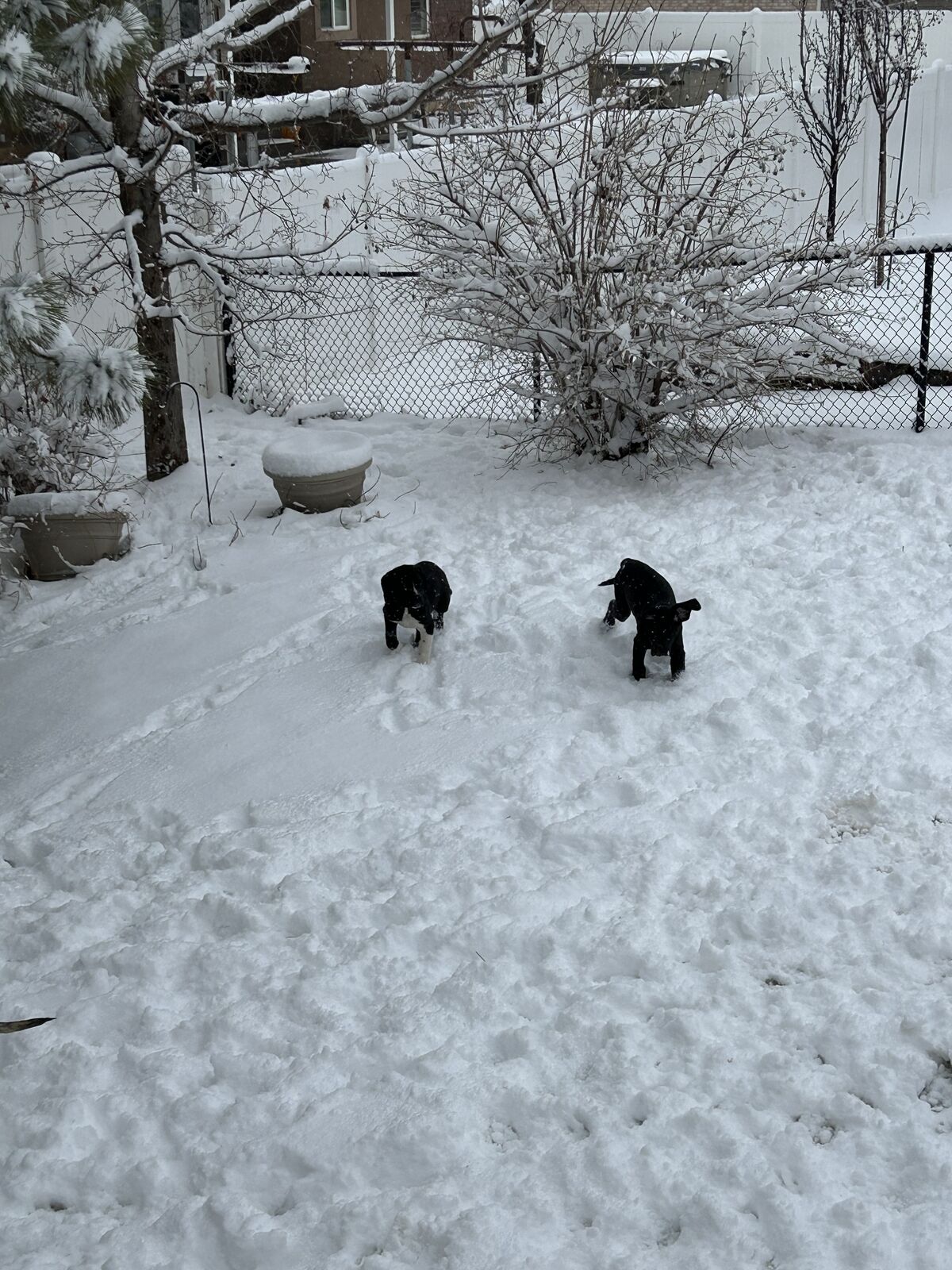 They will look more like Danes. We’ve been taking them outside to get them use to that. They love running around. Working on potty training. We let them play in the backyard. They’ve learned stairs. This is a great winter for potty training where we have no weather. But definitely not put off by snow! That’s the newf in them. See pics!