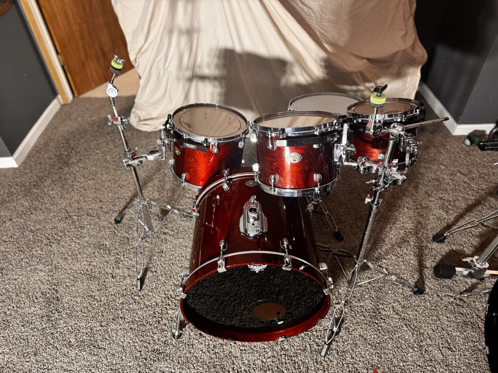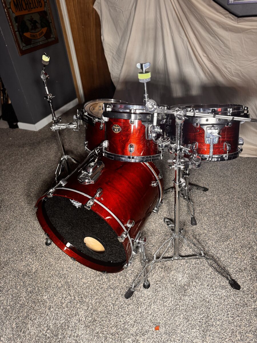 Tama Starclassic birch drum set in good condition. This drum kit was manufactured in Japan and includes the snare. The kit does have some superficial scratches but does not have anything wrong with it structurally.