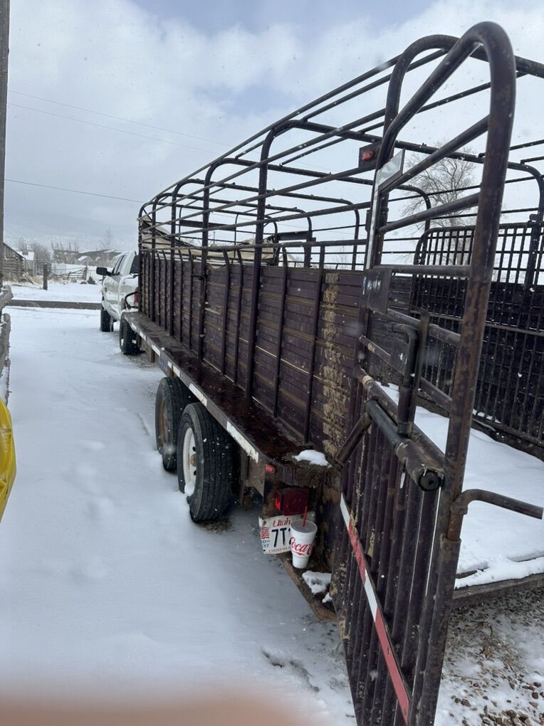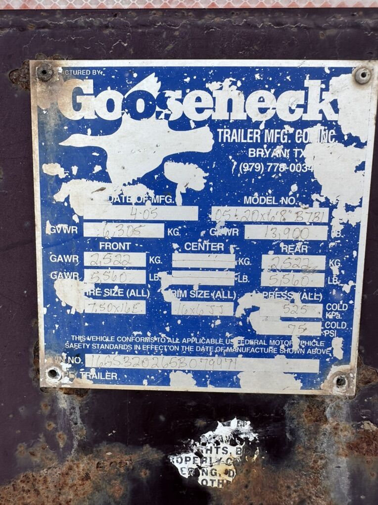 Venmo2005 Gooseneck Trailer. 20’ long with split partition gate. Butterfly rear gates. Tires in decent shape. Still using trailer on a daily basis, floor is rubber everlasting floor.