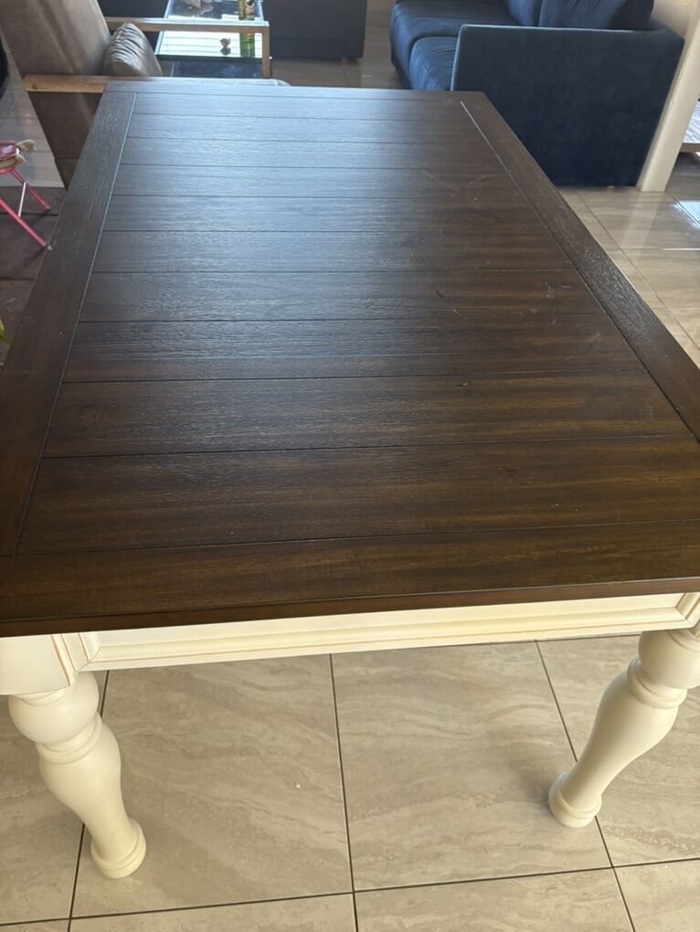 Brand new dining table with 4 drawers measurements are in the pictures look the last picture it has a little damage