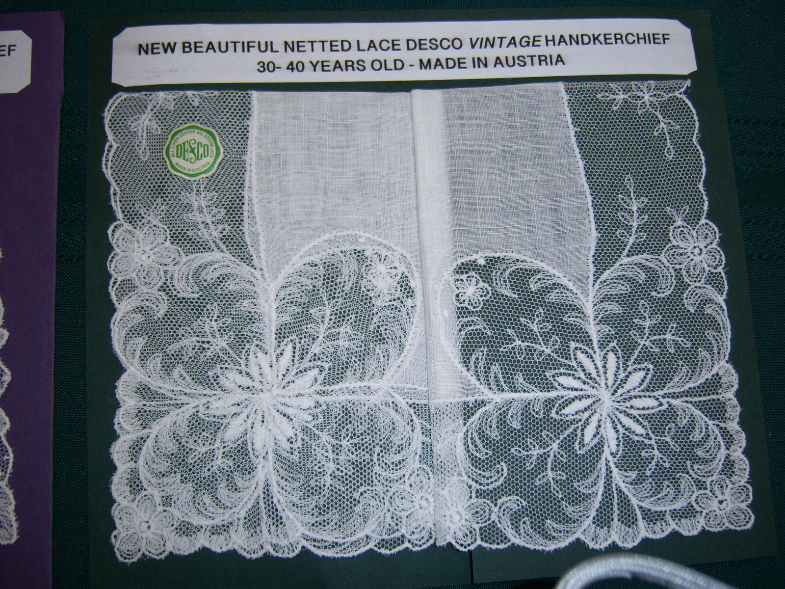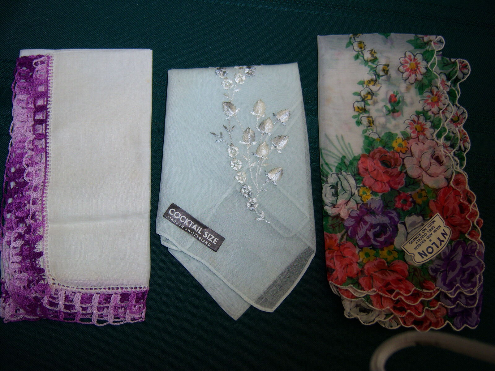 NEW BEAUTIFUL NEW LACE VINTAGE HANKERCHIEFS 30 - 40 YEARS OLD, NYLON FLOWERD - 60 YEARS OLD, COCKTAIL SIZE - MADE IN SWITZERLAND 20-30 YEARS OLD, LAVENDAR AND PURPLE AND CROCHETED BOARDER - 30+ YEARS OLD! LIVE NEAR 1500 EAST AND 5600 SOUTH CLOSE TO COTTONWOOD HIGH SCHOOL. CASH ONLY.....SORRY DO NOT TAKE VENMO!