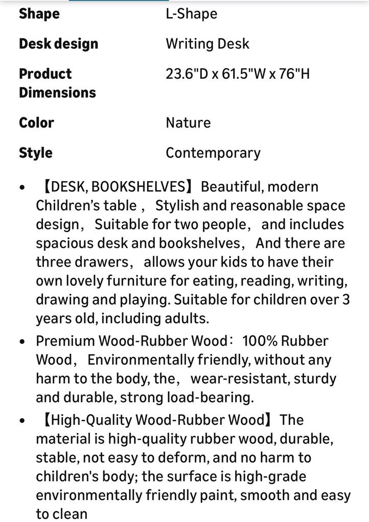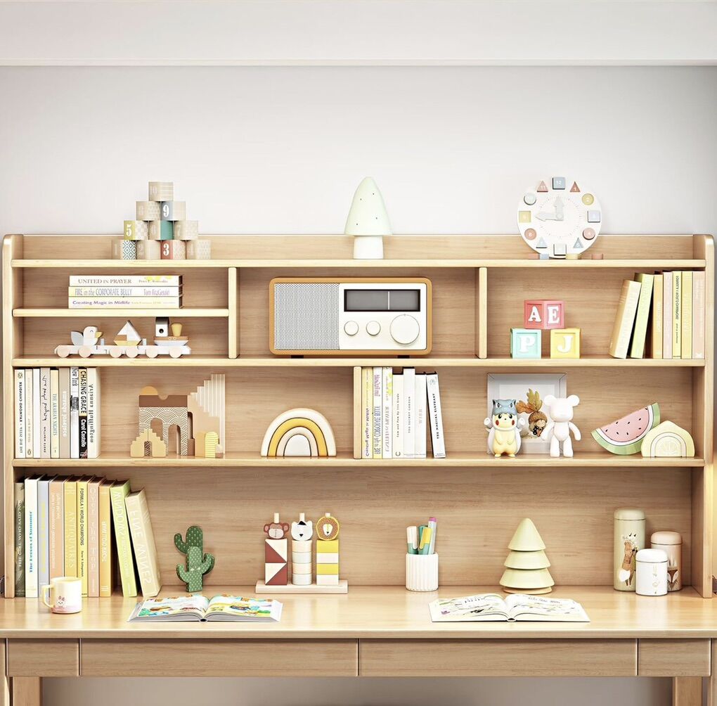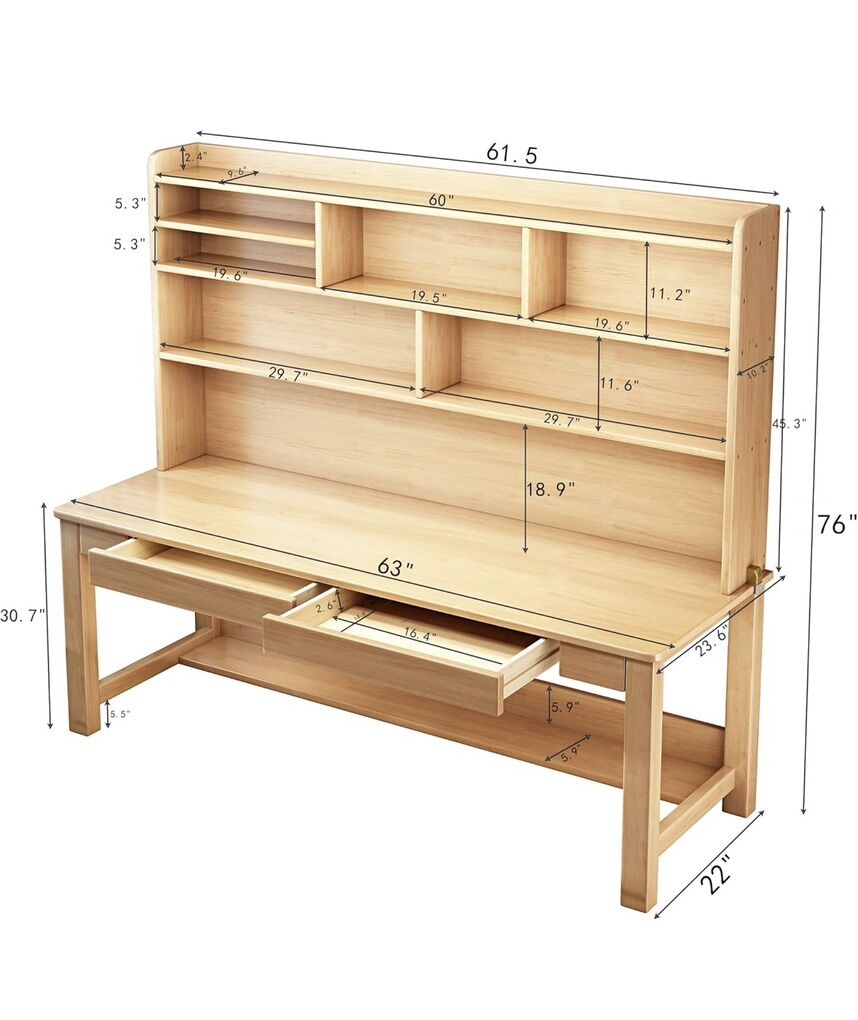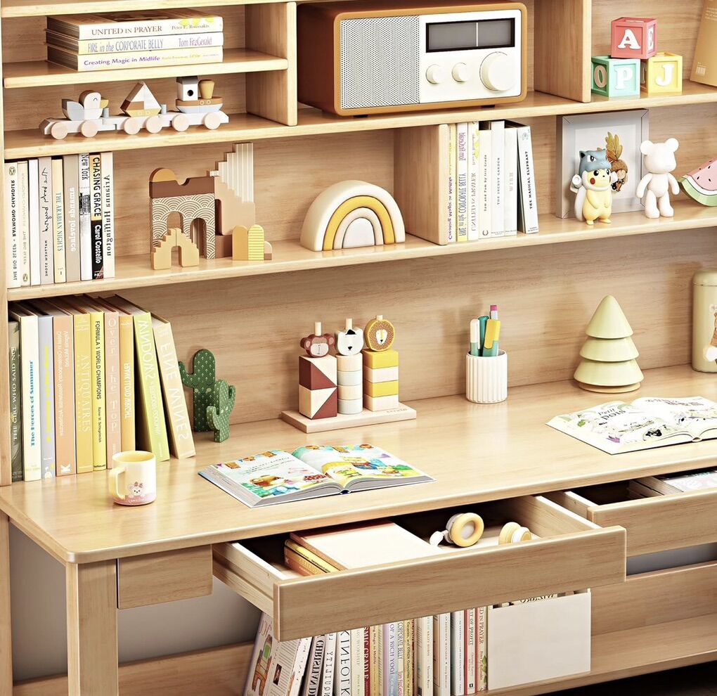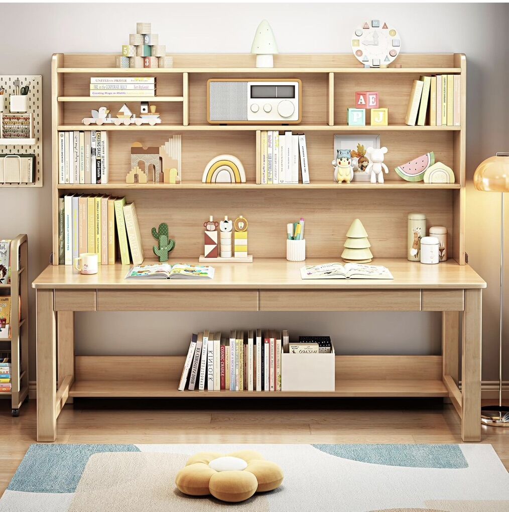 VenmoKids Desk Kids Table with Hutch for Children Wood Table Solid Wood Desk Two Positions Suitable for Two People Suitable for Children's Study Adult Home Office and Other Places(Nature)